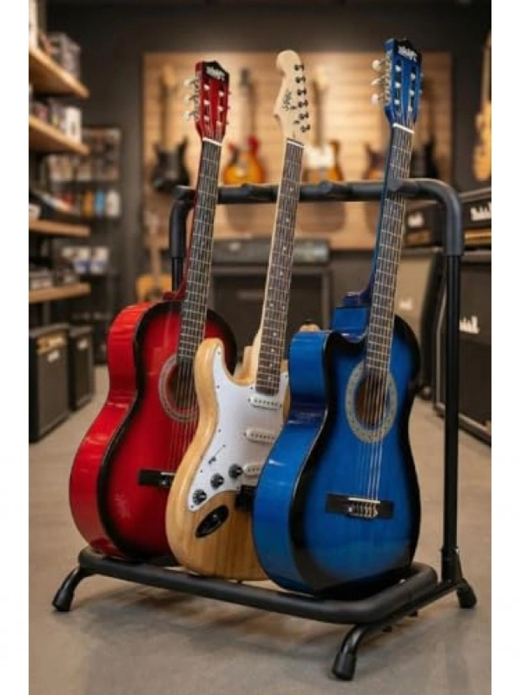Bu üçlü gitar standı, birden fazla gitarı güvenli bir şekilde saklamak için tasarlanmıştır. Dayanıklı ve sağlam yapısı sayesinde gitarlarınızı güvende tutar. Profesyonel müzisyenler için ideal bir tercih olan bu stand, hem evde hem de stüdyoda kullanıma uygundur. Taşınabilir boyutu ile her yere kolayca taşınabilir.