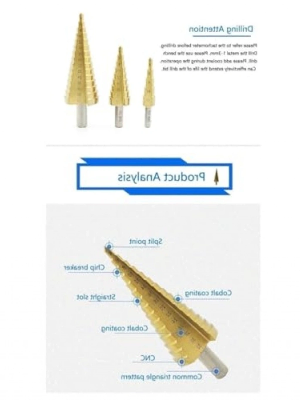 Bu kademeli matkap ucu seti, farklı çaplarda delme yapabilen üç adet huni şekilli uç içerir. Paslanmaz çelikten üretilmiş olup, aşınmaya ve ısınmaya karşı dayanıklıdır. Çok yönlü kullanımıyla sac metal, alüminyum, demir, PVC ve ince levha gibi farklı malzemelerde delik açma işlemlerinde idealdir. Pürüzsüz delik açma özelliği sayesinde temiz kesimler sağlar. Tüm matkaplarla uyumlu şekilde kullanılabilir ve hem profesyonel hem de hobi kullanıcıları için uygun bir seçenektir. Kademeli ölçü göstergesi ile delik çapı ölçümleri kolayca takip edilebilir.