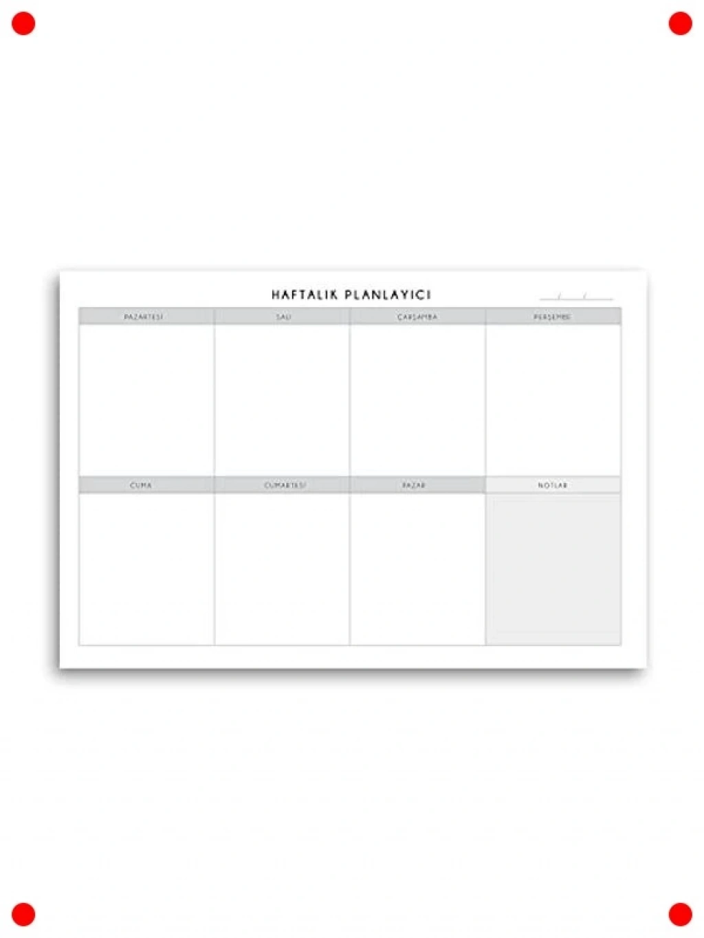 Hayatınızı organize etmek ve hedeflerinize ulaşmak için eksiksiz bir çözüm sunan bu 3'lü masaüstü planlayıcı setiyle tanışın. Set, günlük, haftalık ve aylık planlayıcılardan oluşur; böylece büyük resmi görürken aynı zamanda günlük görevlerinizi de takip edebilirsiniz. Önemli randevuları, iş toplantılarını, proje takvimlerini ve kişisel hedeflerinizi not almak için geniş alanlar sunar. Masaüstünüzde kolayca erişilebilir konumda durarak üretkenliğinizi artırır ve zaman yönetimi becerilerinizi geliştirir. Minimalist ve şık tasarımıyla her çalışma ortamına uyum sağlar, düzenli bir yaşam için vazgeçilmez bir yardımcıdır.