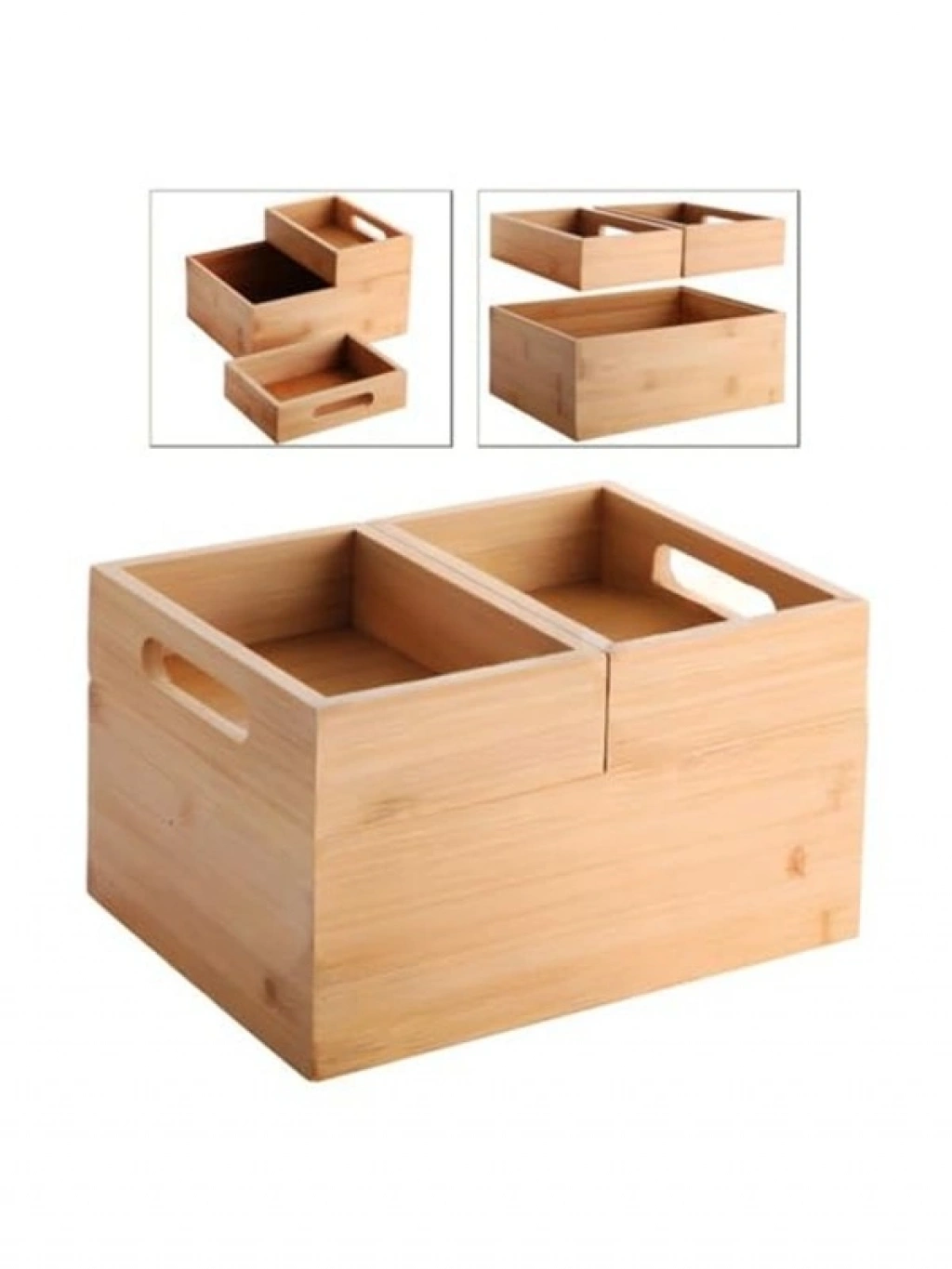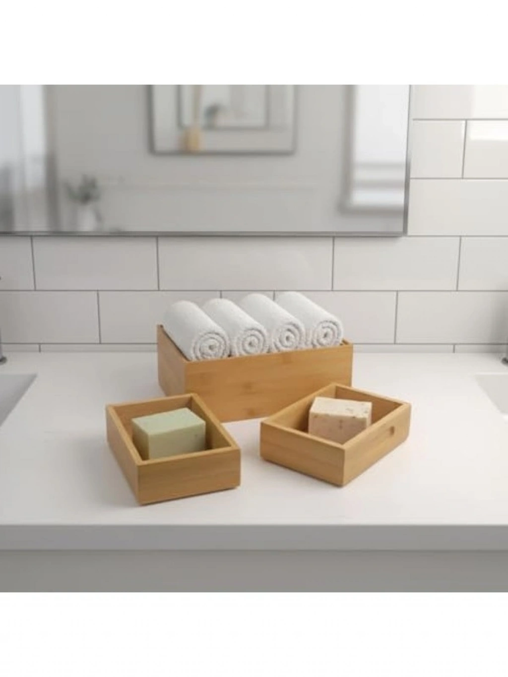 Modüler bambu organizer seti, 1 büyük (23x17x9 cm) ve 2 küçük (11.5x17x5 cm) kutudan oluşmaktadır. Akıllı modüler yapısı ile alan tasarrufu sağlarken, %100 doğal bambu malzemesi ile çevre dostu bir seçimdir. Mutfak, banyo veya ofis gibi birçok alanda kullanılabilecek bu organizer, bambunun doğal dokusu ile her türlü dekorasyona uyum sağlar.