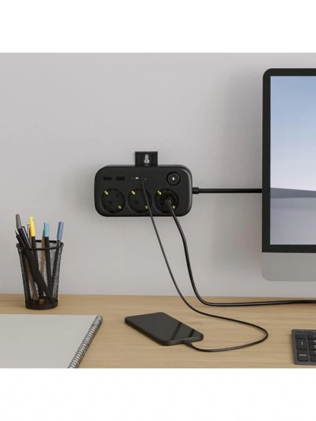 Duvara monte edilebilir tasarımı ile kablo karmaşasını ortadan kaldıran bu çoklayıcı, 3 AC priz ve 4 USB çıkışı ile aynı anda birden fazla cihazı şarj etme imkanı sunar. Tek tuşla açılıp kapatılabilen enerji tasarrufu özelliği ile pratik kullanım sağlar. Akıllı güvenlik koruması ile cihazlarınızı güvenle kullanabilirsiniz. Şık ve dayanıklı tasarımıyla ev ve ofis için ideal bir çözümdür.