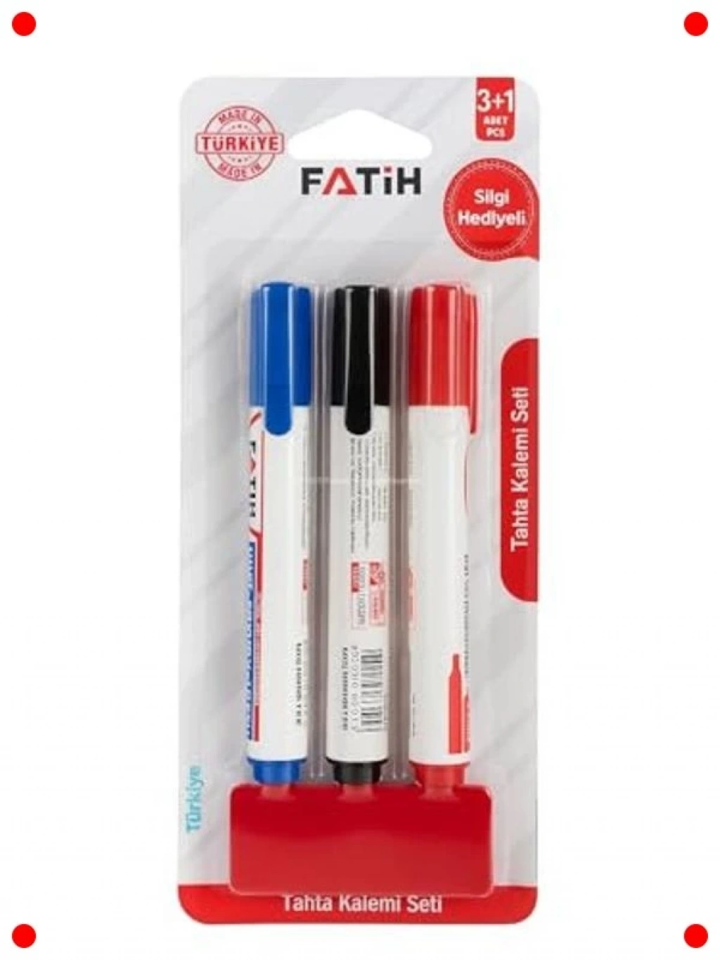 Okul ve ofis ortamları için vazgeçilmez olan bu 3'lü tahta kalemi seti (siyah, mavi, kırmızı) ile sunumlarınızı ve notlarınızı daha etkili hale getirin. Her bir kalem, yuvarlak ucu sayesinde pürüzsüz ve belirgin çizgiler çizer. En önemlisi, toxic içermeyen formülü, EN71 ve ISO9001 sertifikaları ile güvenli kullanım sağlar. Özel mürekkebi sayesinde kolayca silinebilir, tahtada leke bırakmaz. Setin yanında hediye edilen silgi, temiz ve pratik bir kullanım sunar. Canlı renkleriyle dersleri veya toplantıları daha ilgi çekici hale getirirken, yüksek kaliteli yapısıyla uzun ömürlüdür.