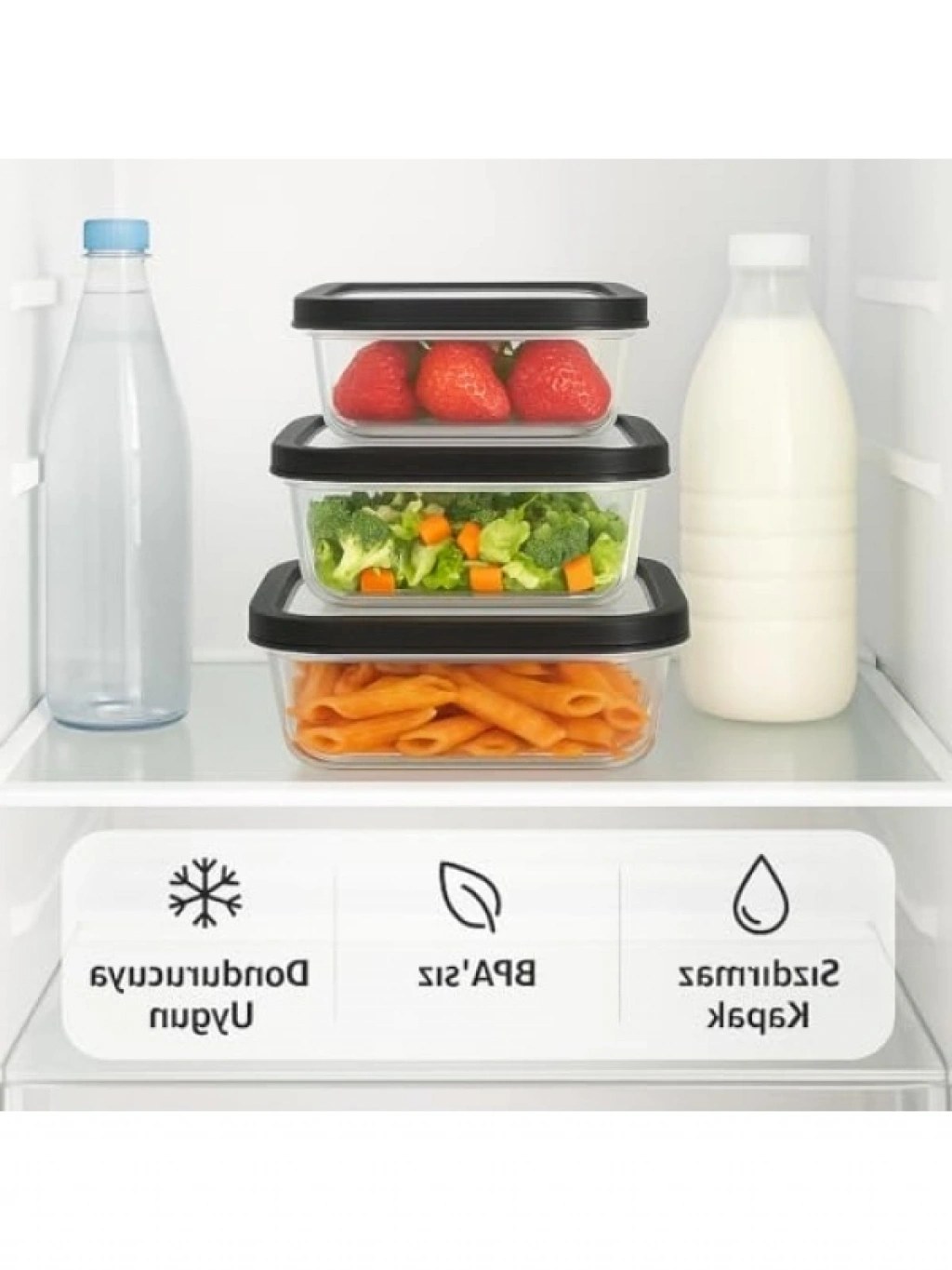 Bu 3 farklı boyutta saklama kabı seti, 300ml, 600ml ve 1200ml kapasiteleri ile çeşitli yiyecek türleri için idealdir. %100 sızdırmaz kapak sistemi sayesinde sıvı ve katı gıdaları güvenle saklayabilirsiniz. Şeffaf tasarımı, içindekileri kolayca görerek hızlı ve pratik kullanım sağlar. BPA içermeyen sağlıklı ve dayanıklı plastikten üretilmiştir, böylece çevre dostu bir tercih sunar. Buzdolabı düzenleyici, yemek kabı ya da kuru gıda kutusu olarak çok amaçlı kullanım imkanı sunmaktadır.