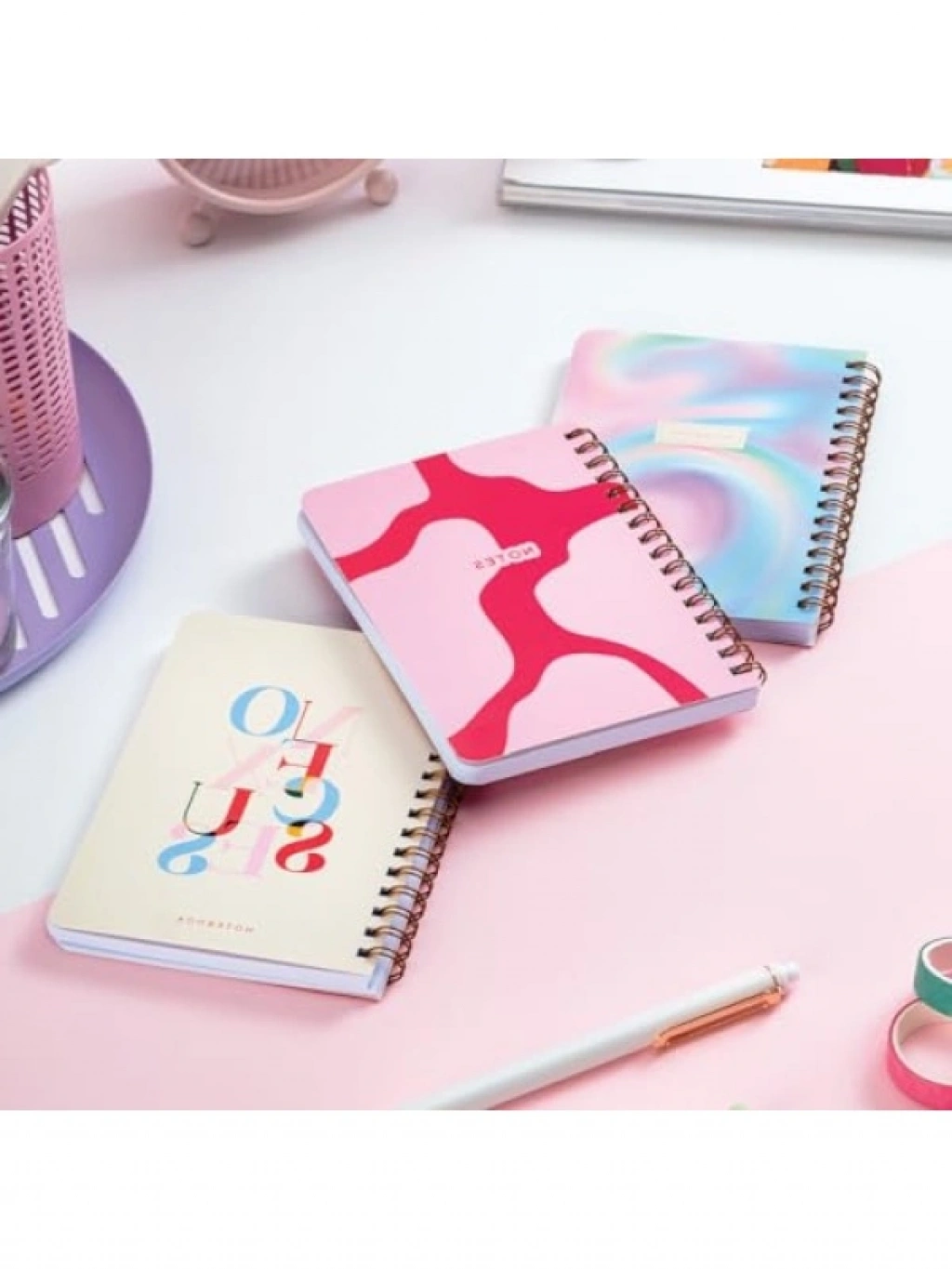 Bu 3'lü defter seti, her biri 10x14 cm boyutunda ve soyut gradient tasarımı ile dikkat çekiyor. Spiralli ciltleme ve çizgili sayfaları sayesinde not almayı kolaylaştırır. Dayanıklı karton kapakları ile uzun süreli kullanım sunan bu defterler, hayal gücünüzü geliştirirken, şık bir görünüm de sağlar. Hem okul hem de günlük kullanımlar için idealdir.