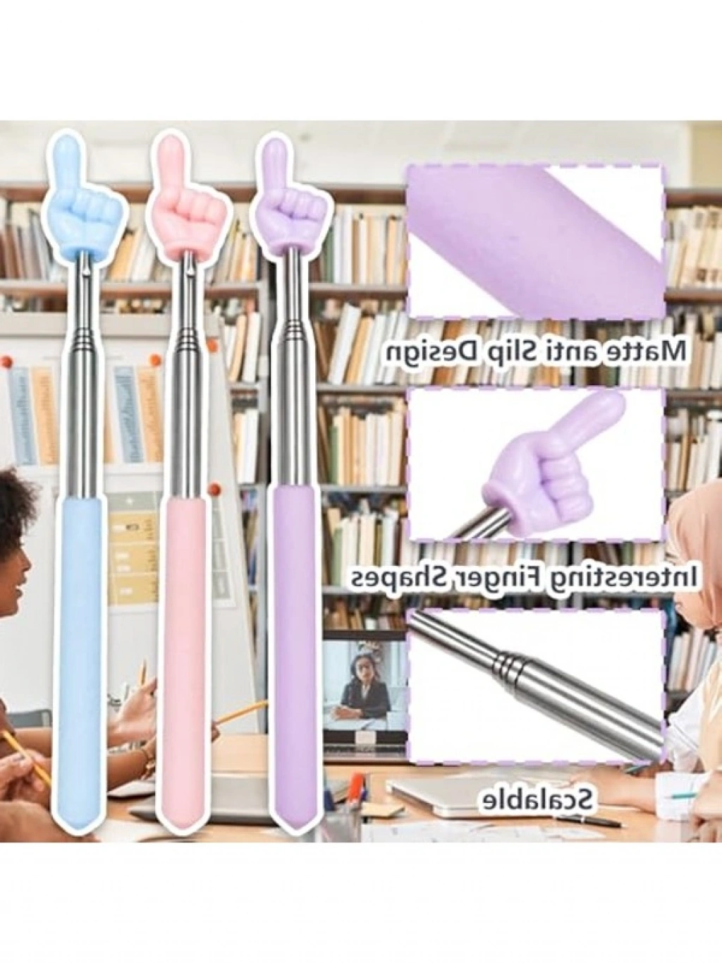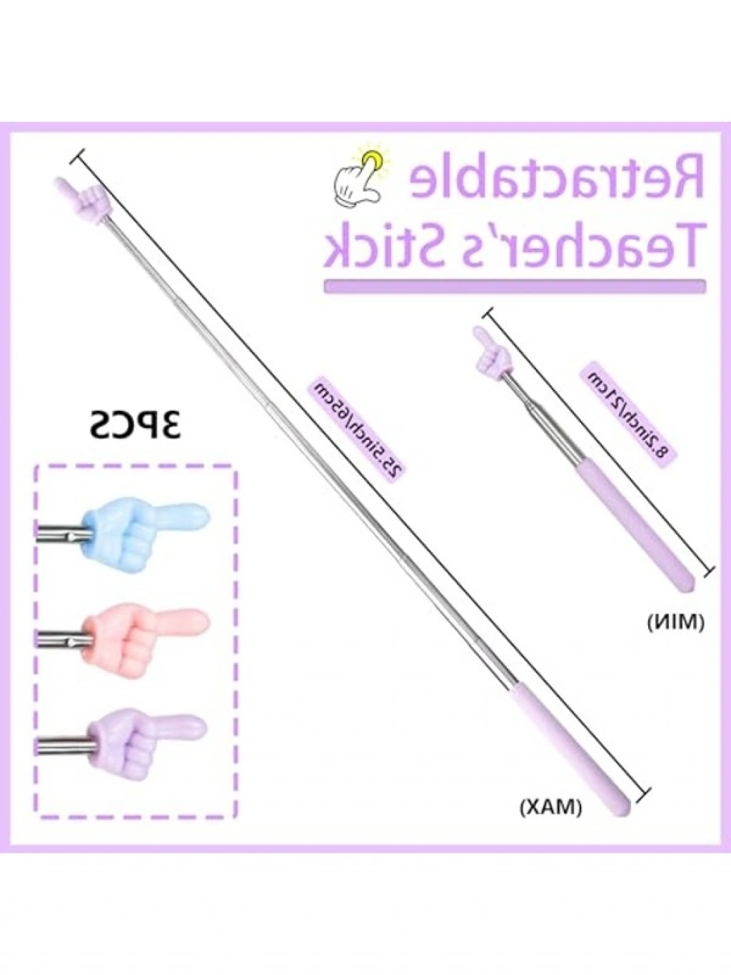 3'lü teleskopik parmak pointer işaretçi seti, yüksek kaliteli malzemelerle üretilmiş olup güvenli ve dayanıklıdır. Pürüzsüz yüzeyi ile rahat bir tutuş sunar. Katlanabilir tasarımı, öğretmenler ve ebeveynler için taşımayı kolaylaştırır. Farklı renk seçenekleri ile öğretim, koçluk ve konferanslar için mükemmel bir yardımcıdır.