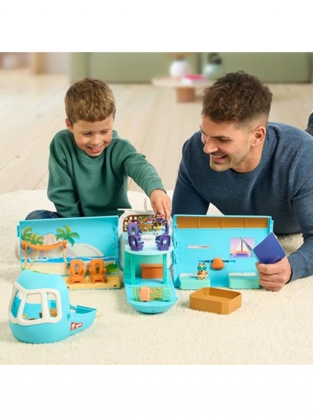 Bu 3'ü 1 arada dönüşen uçak oyun seti, çocukların hayal gücünü harekete geçiriyor. Uçak, kolayca bir tatil köyü ve tekneye dönüşerek farklı oyun senaryoları sunuyor. Set içinde iki figura bulunuyor ve oyunculara 25'ten fazla ses ve ifade ile interaktif bir deneyim sağlıyor. İki seviyeli okyanus cephesi tesisine sahip olan set, 15 oyun parçasıyla birlikte geliyor. Çocuklar, bu eğlenceli setle birlikte farklı hikayeler oluşturabilir ve maceralar yaşayabilir.