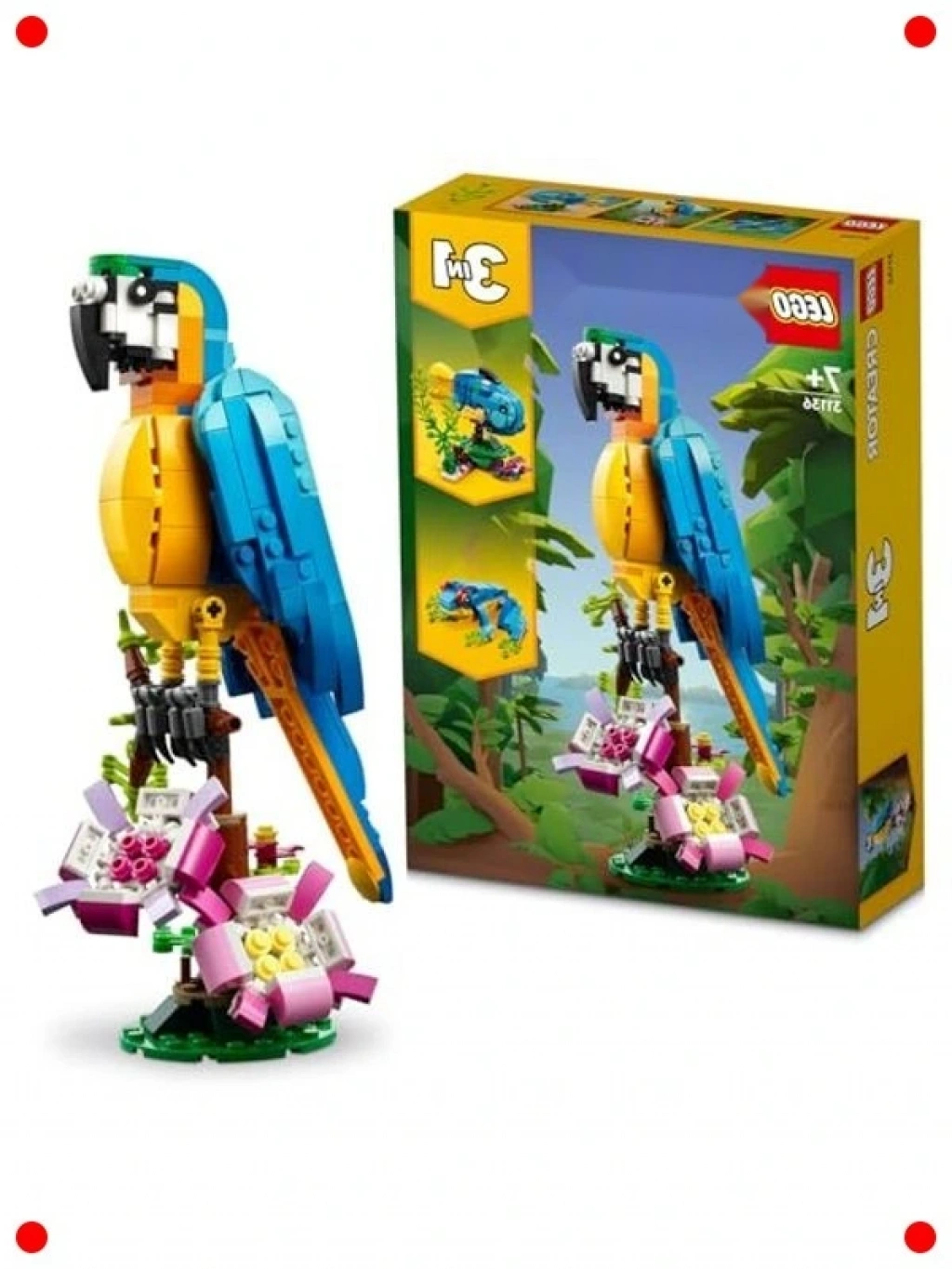 Tek bir setle üç farklı egzotik hvanı inşa etme imkanı sunan bu 253 parçalık yapım setiyle yaratıcılığınızı şaha kaldırın! Canlı renklerdeki parçalarla önce göz alıcı bir papağan, sonra sevimli bir balık ve son olarak da oyuncu bir kurbağa oluşturabilirsiniz. Bu "3'ü 1 arada" konsept, çocukların hal gücünü ve yapım becerilerini liştirir, farklı tasarımları denemeye teşvik eder. 7 yaş ve üzeri çocuklar için eğlenceli ve eğitici bir deneyim sunar. Hvanları seven küçükler için harika bir hee alternatifidir.