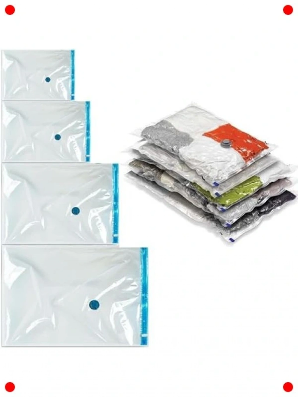 Yorgan, yastık ve mevsimlik kıyafetleriniz için özel olarak tasarlanmış 4 farklı boyutta vakum saklama torbası seti ile depolama alanınızı maksize edin. Bu set içerisinde 120x100 cm, 100x80 cm, 80x60 cm ve 70x50 cm boyutlarında torbalar bunur, böylece her türlü tekstil ürününüzü rahatlıkla saklayabilirsiniz. Sıvı geçirmez, küf, toz, haşere ve koku yapmaz özellikleri sayesinde eşyalarınızı dört mevsim güvende tutar. Dayanıklı ve yeniden kullanılabilir yapısıyla uzun süreli bir düzenleme çözümü sunar. Vakum süpürgesi ile kolayca hası boşaltılabilir.