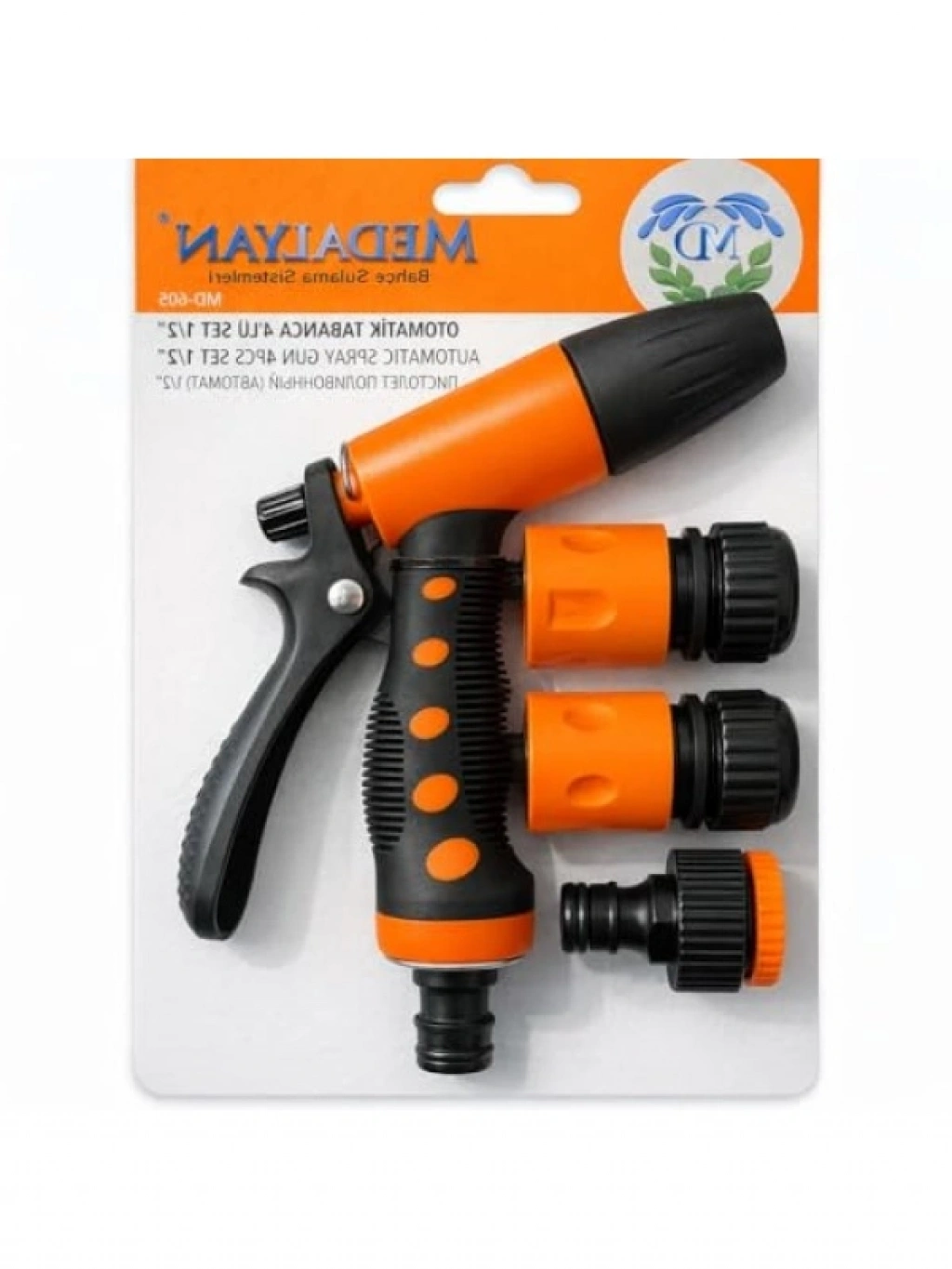 Bu 4 parçadan oluşan set, kullanıcıya zahmetsiz ve kontrollü püskürtme imkânı sunar. Dayanıklı ABS malzeme ile üretilmiş olup, darbelere karşı korumalı uzun ömürlü bir yapıdadır. Ayarlanabilir başlığı sayesinde sis, yağmurlama ve tazyikli püskürtme seçenekleri sunar. Ergonomik tasarımı, uzun süreli kullanımlarda el yorgunluğunu azaltır. Bahçe sulama, araç yıkama gibi birçok alanda kullanılabilen bu set, hızlı kurulum imkanı ile pratik bir kullanım sağlar.