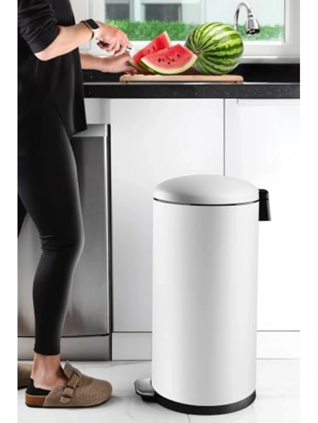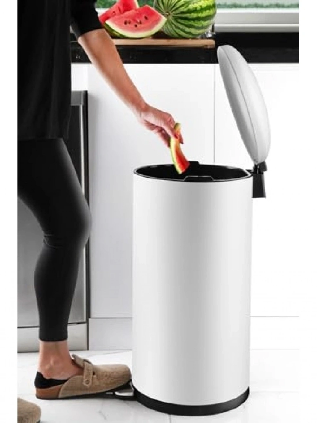 Paslanmaz malzemeden üretilmiş bu çöp kovası, şık mat beyaz rengi ile her ortama uyum sağlar. Yumuşak kapanan kapak sistemi, sessiz bir kullanım sunar. Geniş iç hacmi, 40 litre kapasiteye sahiptir ve iç çıkarılabilir kova ile temizlik işlemini kolaylaştırır. Hem evde hem de ofiste kullanıma uygun, uzun ömürlü ve pratik bir üründür.