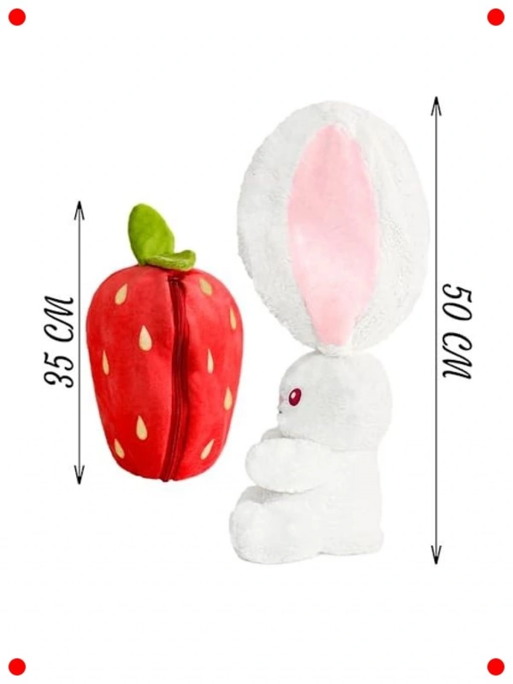 Sevimli ve yumuşacık bu pelüş tavşan oyuncakla çocuklarınızın kalbini fethedin! 40 cm boyundaki bu sevimli tavşan, fermuarlı, nakışlı bir meyve şeklinde çanta içinde gelir. Pembe, kırmızı, karpuz, ananas veya havuç gibi farklı meyve temalı seçenekleriyle her zevke uygun bir alternatif sunar. Yumuşak dokusu sayesinde sarılmak için idealdir ve çocukların hayal gücünü besler. Hem bir oyuncak hem de küçük eşyaları saklamak için pratik bir çanta olarak kullanılabilir. Paskalya veya diğer özel günler için mükemmel bir hediye seçeneği.