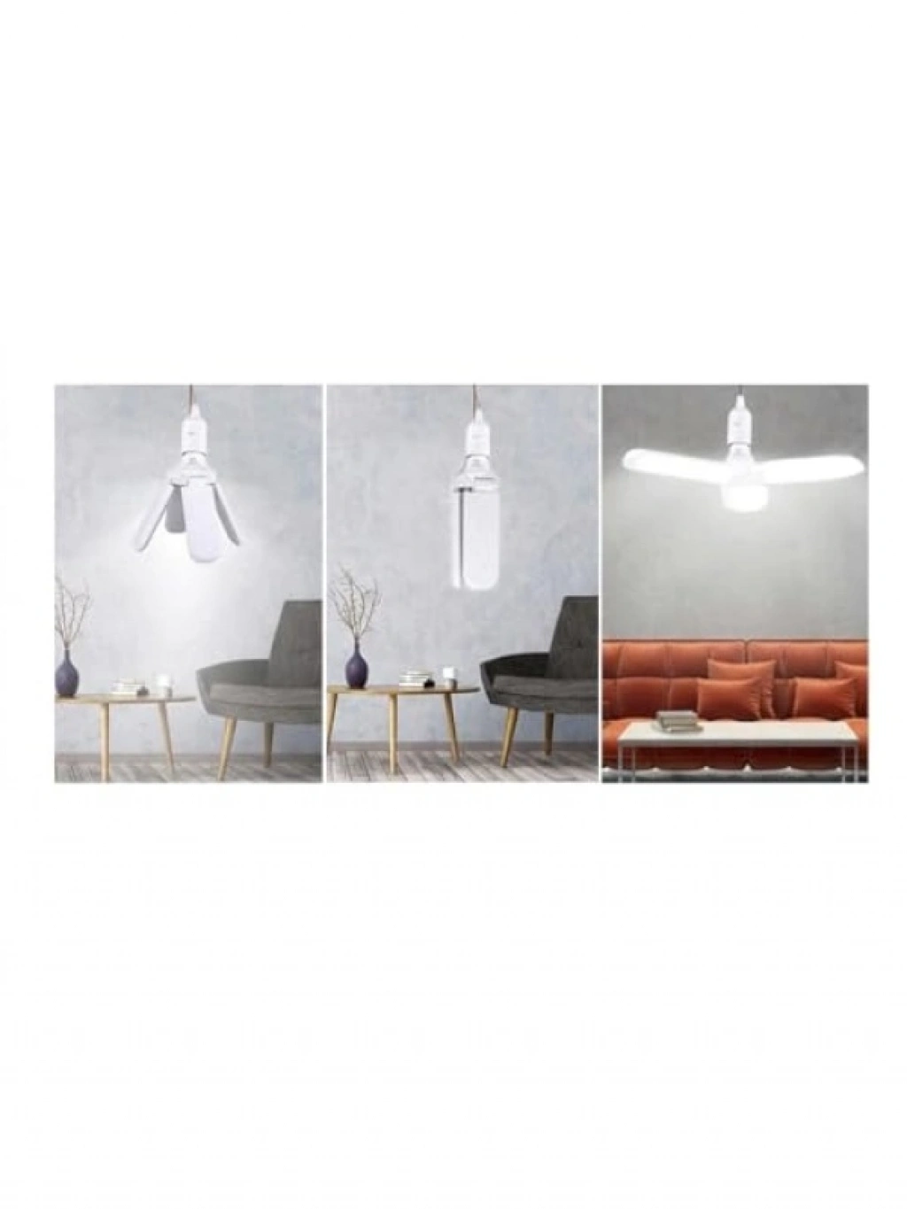 Yenilikçi pervane tasarımı ile dikkat çeken bu 42 Watt LED ampul, 6500K beyaz ışık verir ve 3250 lümen aydınlatma gücüne sahiptir. Katlanabilir kolları sayesinde ışığın açısını istediğiniz gibi ayarlayabilirsiniz. E27 duy ile uyumlu olan bu ampul, geniş alanlar için idealdir. Yüksek ışık gücü ve enerji tasarrufu ile uzun ömürlü bir kullanım sunar. Çeşitli kapalı mekanlarda kullanıma uygun olup, göz yormayan aydınlatma sağlar.