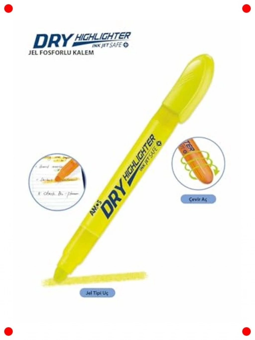 Çalışmalarınızı ve notlarınızı canlı renklerle vurgulamak için tasarlanmış bu 4'lü jel fosforlu kalem seti ile bilgiyi kolayca organize edin. Kalemlerin "dry hl" özelliği, yazdığınız an kurumasını sağlayarak bulaşma riskini ortadan kaldırır. Bu sayede kağıdınızın temiz kalmasını ve yazılarınızın net görünmesini garanti eder. Yüksek kalitede jel mürekkebi, uzun ömürlü ve parlak vurgulamalar yapmanızı sağlar. Ders kitapları, not defterleri veya önemli belgeler üzerinde kullanıma uygundur. Pratik poşet ambalajı sayesinde kalemlerinizi kolayca taşıyabilir ve düzenli tutabilirsiniz. Okul, ofis veya evde ders çalışırken vazgeçilmez bir yardımcıdır ve önemli noktaları hızla işaretlemenizi sağlar.