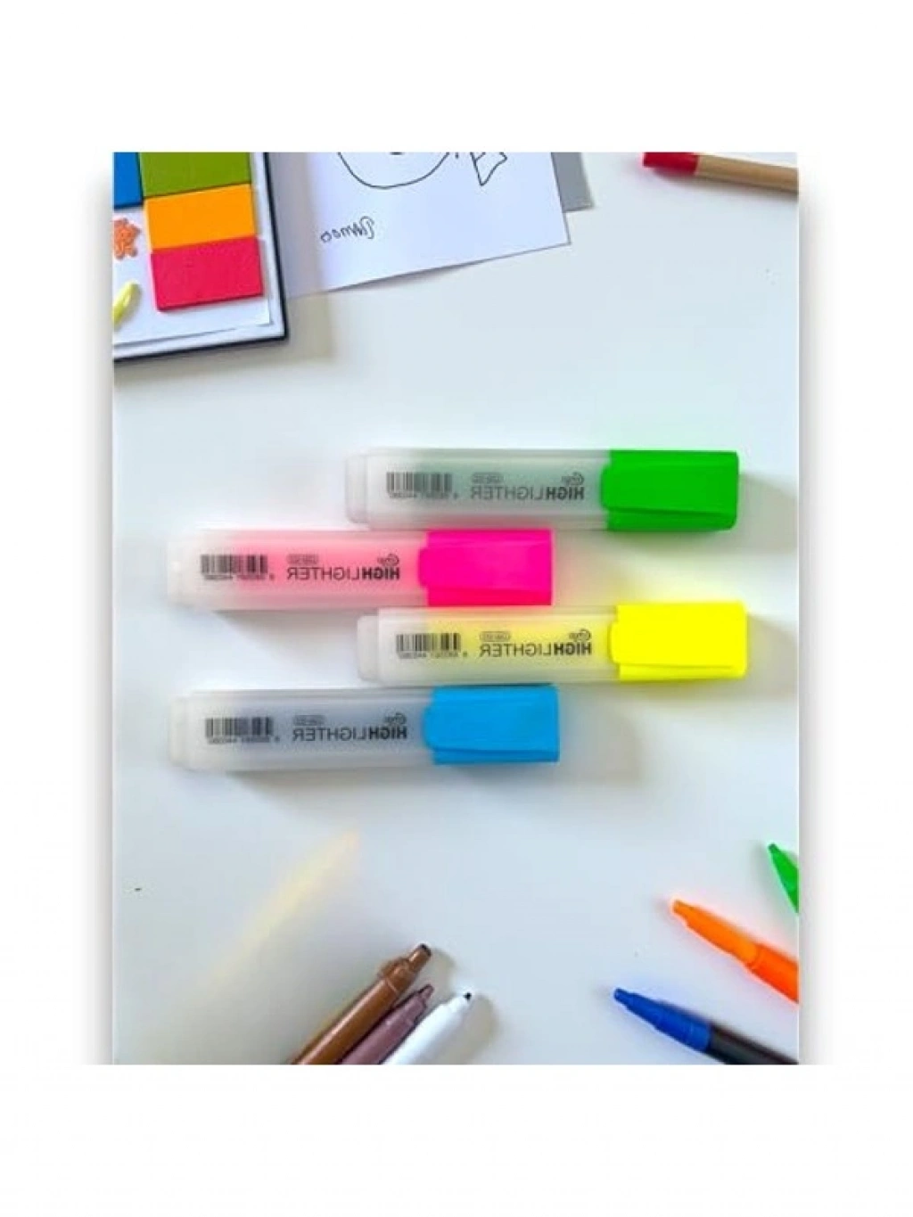 4'lü neon renk fosforlu highlighter kalem seti, klipsli tasarımı ile taşınabilirliği artırır. Okul, ofis ve sanat projelerinde kullanmak için idealdir. Ergonomik yapısıyla rahat bir tutuş sağlayarak, uzun süreli kullanımlarda konfor sunar.