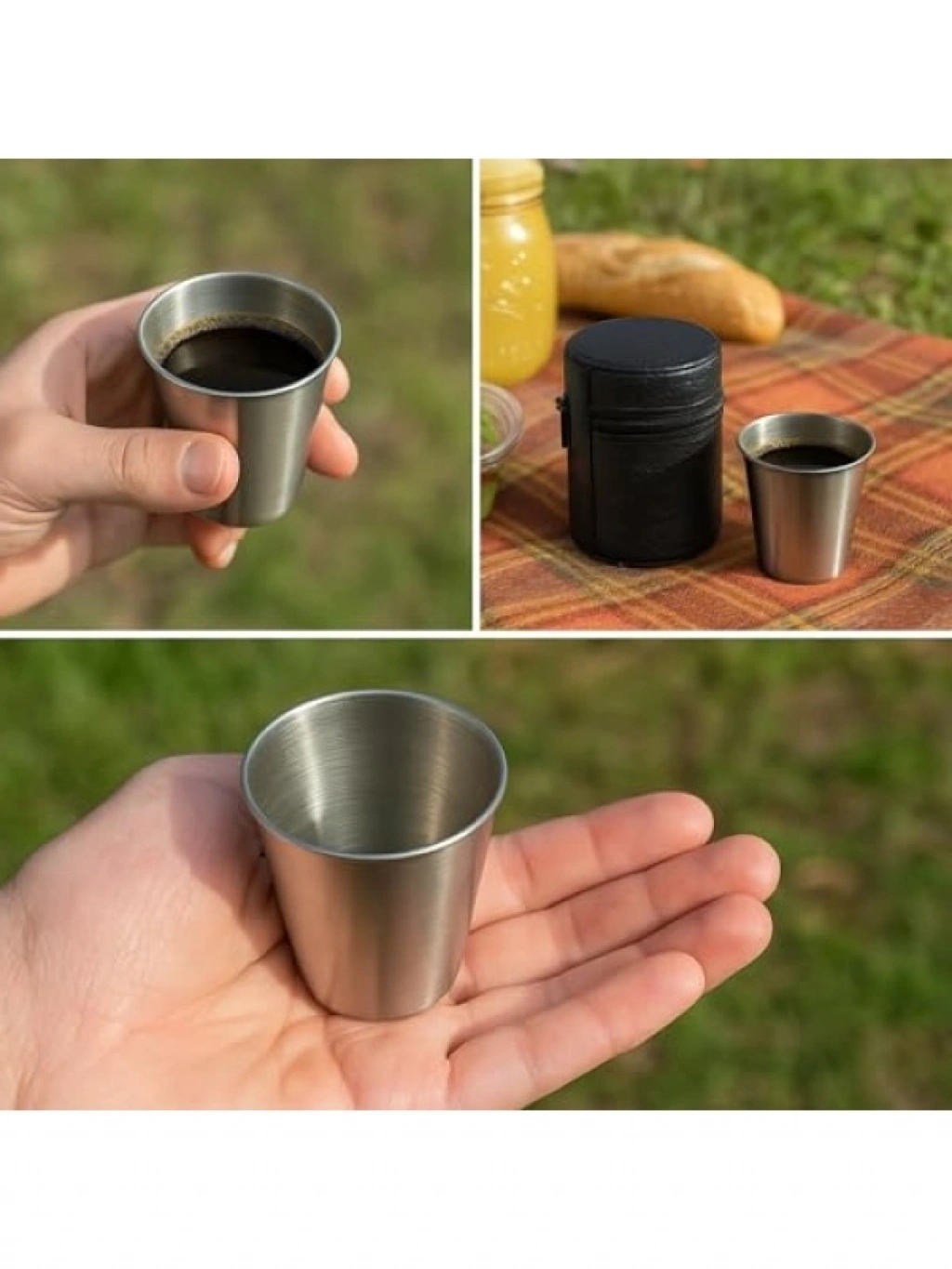 Paslanmaz çelikten üretilen bu 4'lü kamp bardağı seti, 70 ml kapasiteye sahiptir. Deri taşıma kılıfı ile birlikte gelir, bu da hijyenik ve güvenli bir taşıma sağlar. Kamp, piknik veya günlük kullanım için mükemmel bir seçimdir. Dayanıklı yapısı ve kompakt ölçüleri sayesinde her zaman yanınızda taşıyabilirsiniz.