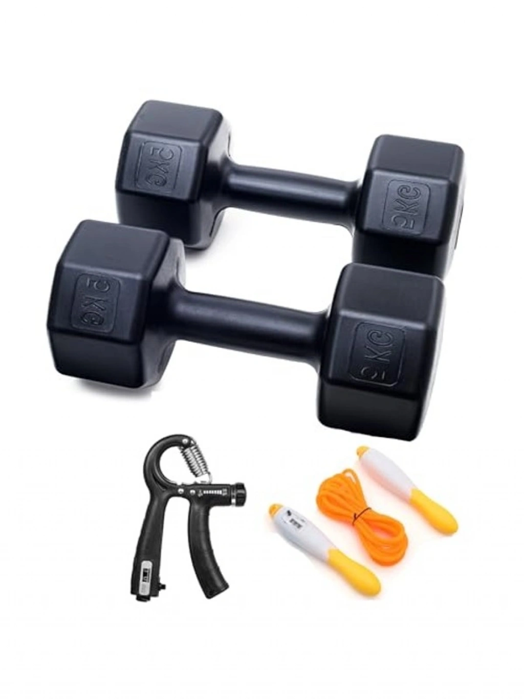 5 adet dambıl ve sayaçlı el yaylarıyla birlikte bir atlama ipi seti, evde spor yapmayı sevenler için mükemmel bir seçenek. Set içinde 2 adet ayarlanabilir sayaçlı el yayının yanı sıra, 1 adet sayaçlı atlama ipi bulunuyor. Dambıllar ve elastik yapısıyla vücut geliştirme programlarınıza destek verecek bir set.
