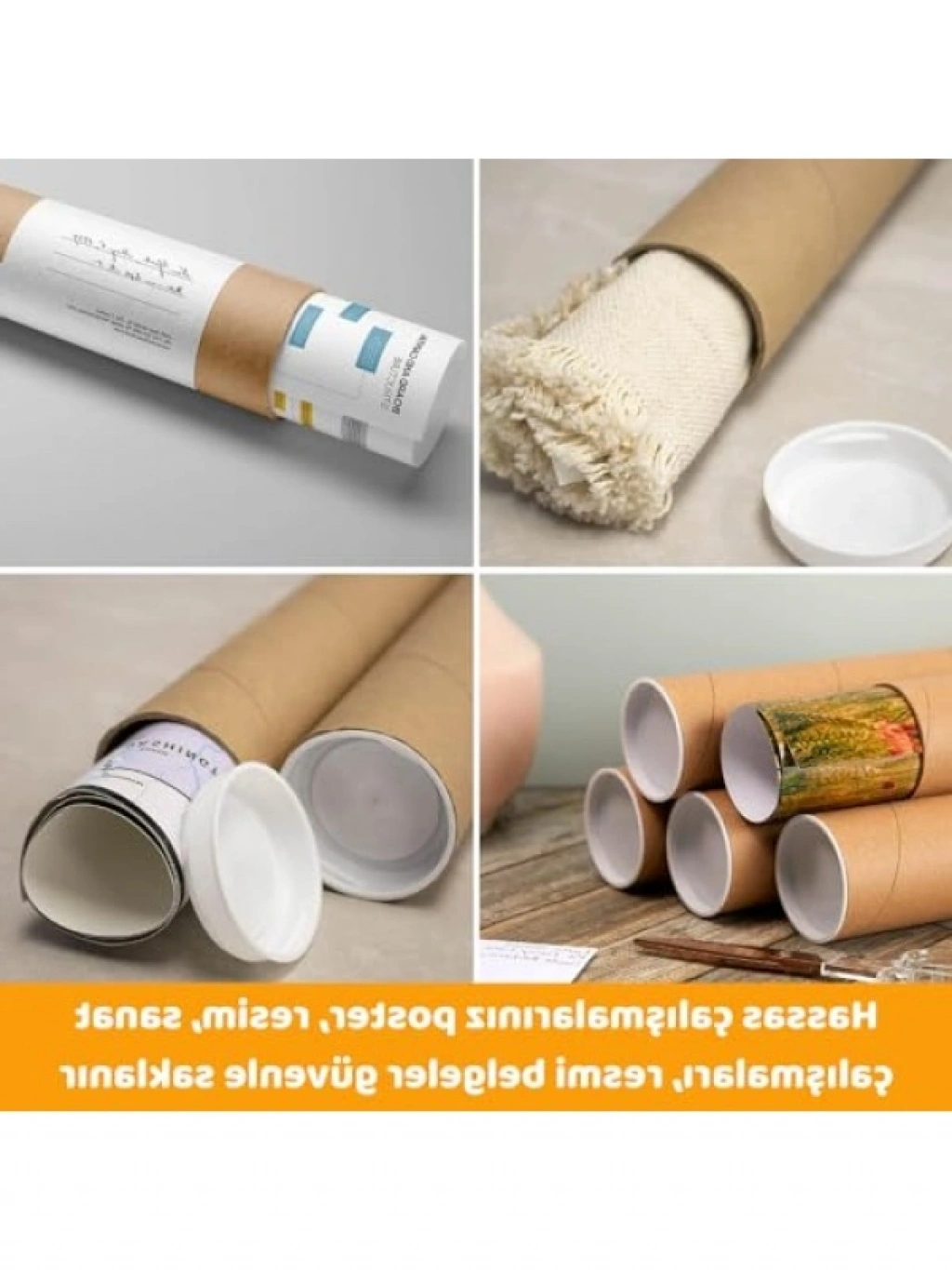 Bu set, 60 cm uzunluğunda kapaklı silindir karton kutulardan oluşmaktadır. Yüksek kaliteli kraft kağıttan üretilmiş bu tüpler, depolama ve nakliye için idealdir. Değerli eşyalarınızı koruma altına alırken, dış etkenlerden de zarar görmesini önler. Kapaklı tasarımı sayesinde içindekilerin güvenli bir şekilde saklanmasını sağlar.