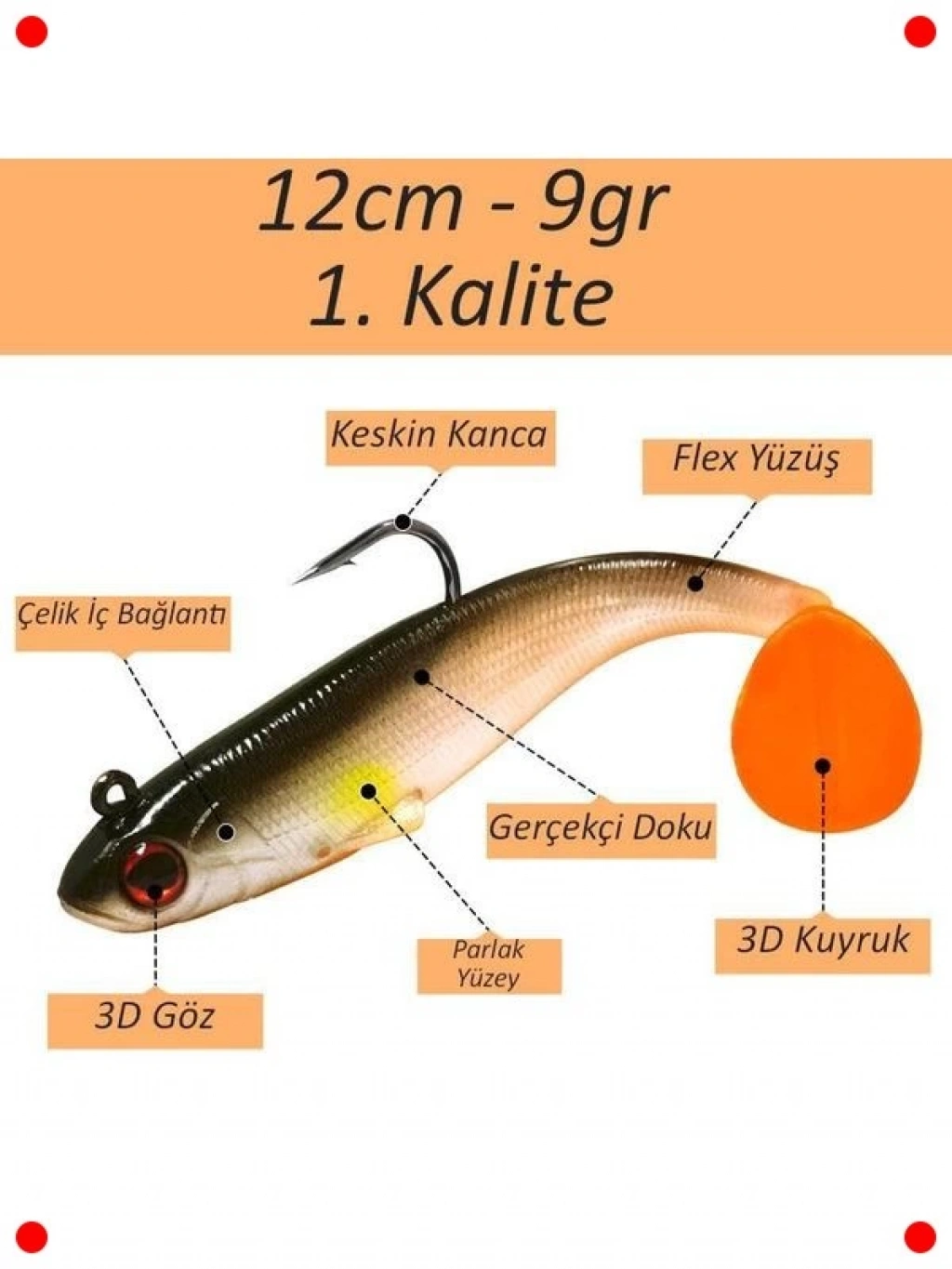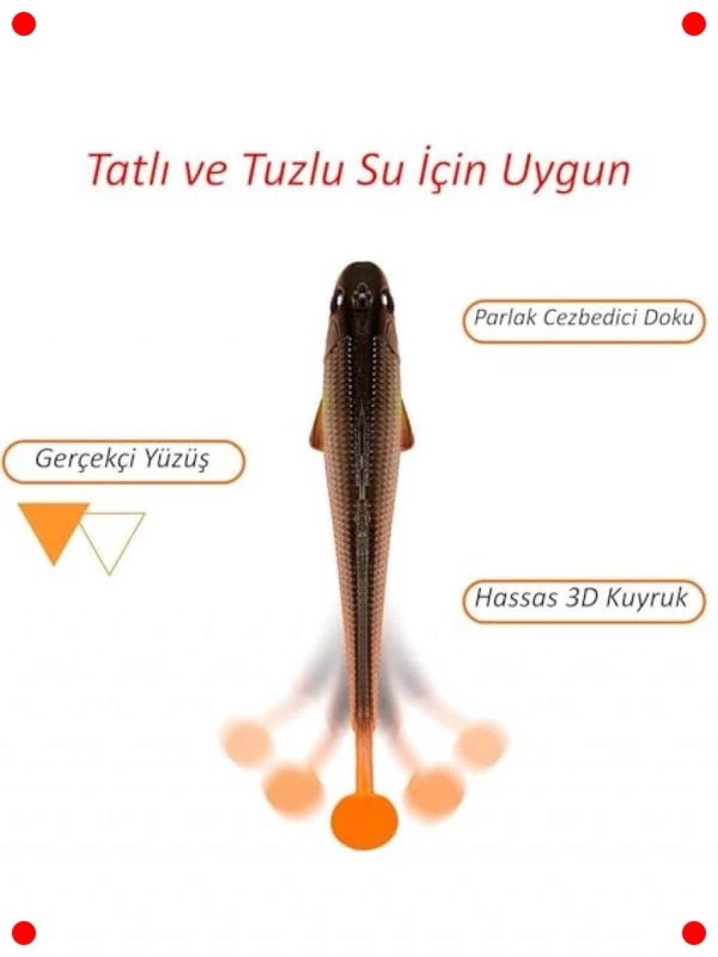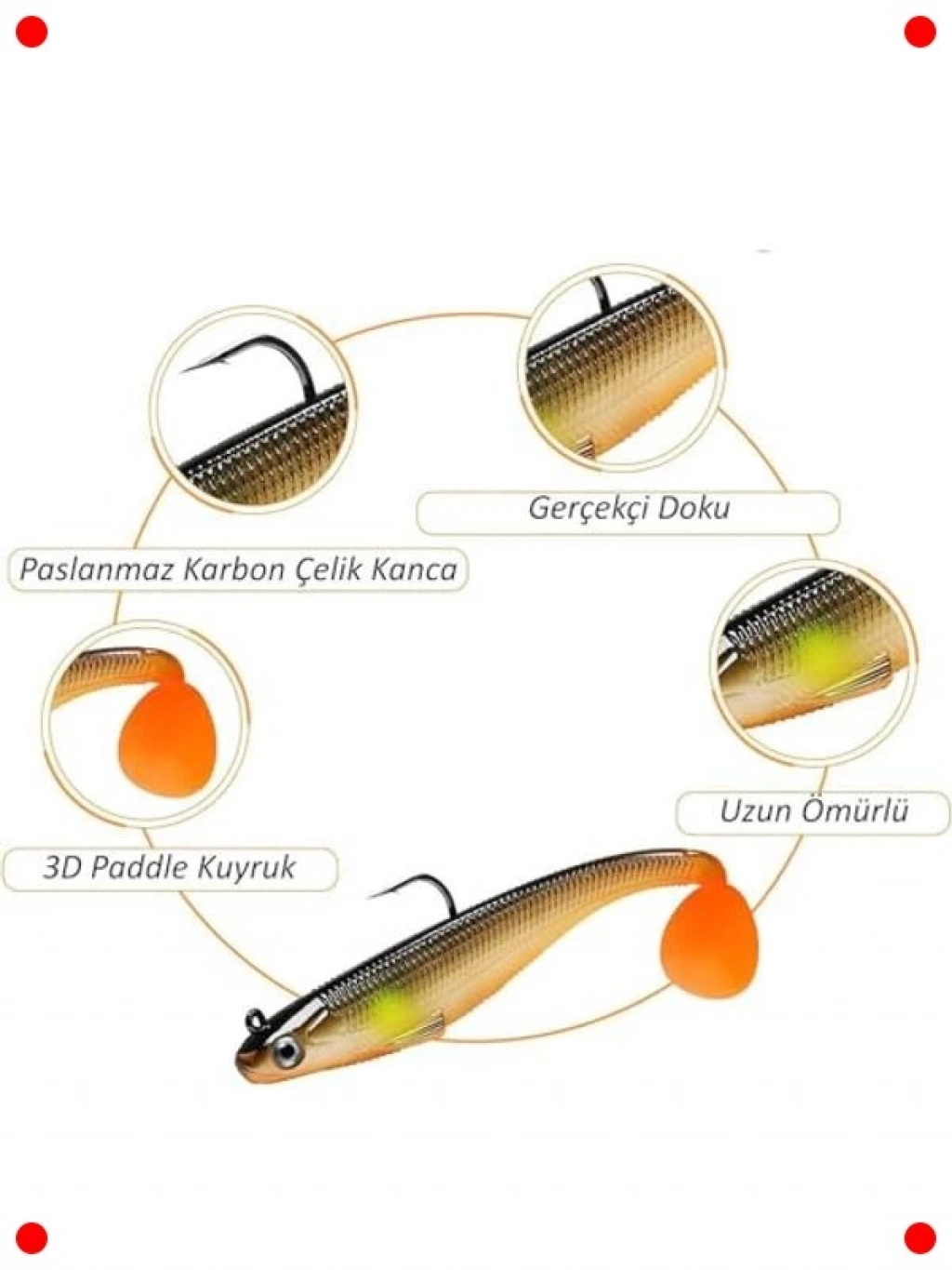 Avlarınızı garantilemek için tasarlanmış bu 5 adetlik yumuşak silikon 3D sahte olta yem seti, balıkçıların en büyük yardımcılarından olacak. Gerçekçi 3D balık gözleri ve doğal yüzüş hareketleriyle avcı balıkların dikkatini anında çeker. Yüksek kaliteli yumuşak silikon malzemeden üretilen bu yemler, ısırmaya karşı son derece dayanıklıdır ve uzun ömürlü kullanım sunar. Levrek, turna, sudak gibi birçok yırtıcı balık türü için etkilidir. Farklı renk ve desen seçenekleriyle her türlü su ve ışık koşuluna uyum sağlar. Bu set sayesinde balıkçılık maceralarınızda her zaman bir adım önde olacaksınız.