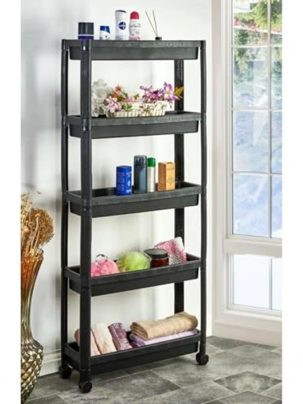 Bu 5 katlı tekerlekli organizer, evinizde veya ofisinizde düzen sağlamak için mükemmel bir çözümdür. Hafif ve ergonomik tasarımı sayesinde kolayca taşınabilir. Tekerlekli yapısı, istediğiniz yere rahatça taşımanızı sağlar. Kolay kurulum özelliği ile anında kullanıma hazır hale gelir. Siyah rengi, her türlü dekorasyon stiliyle uyum sağlar ve şıklık katmaktadır.