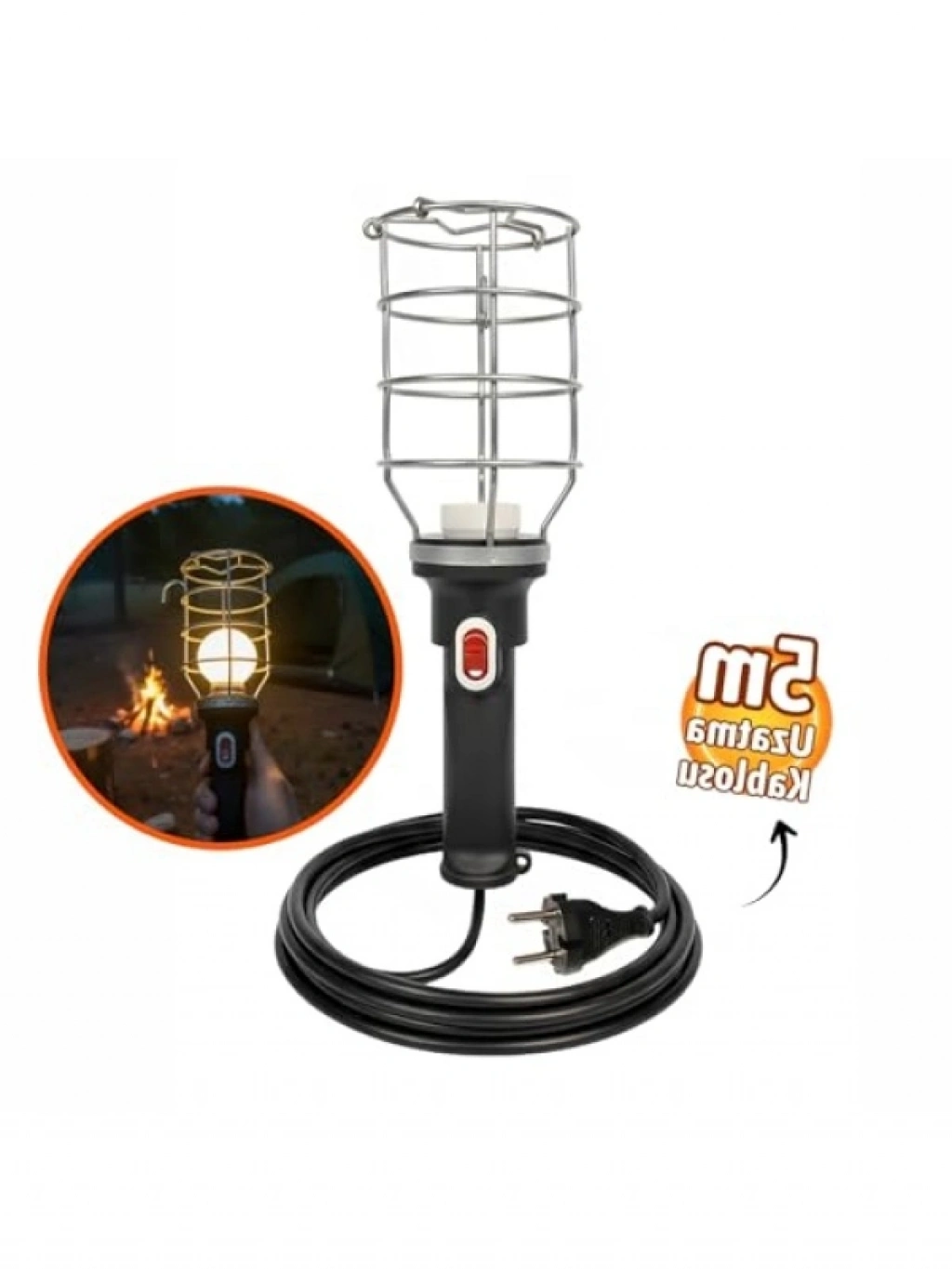 Bu 5 metre uzunluğundaki kablolu E27 standart duy, dayanıklı metal koruma kafesi ve siyah plastik sapıyla güvenilir bir aydınlatma çözümüdür. Seyyar kullanım imkanı sunarak çeşitli alanlarda rahatlıkla kullanılabilir. Enerji tasarruflu yapısı ile uzun süreli aydınlatma sağlar. Hızlı ve pratik kullanım için ideal bir tercihtir.