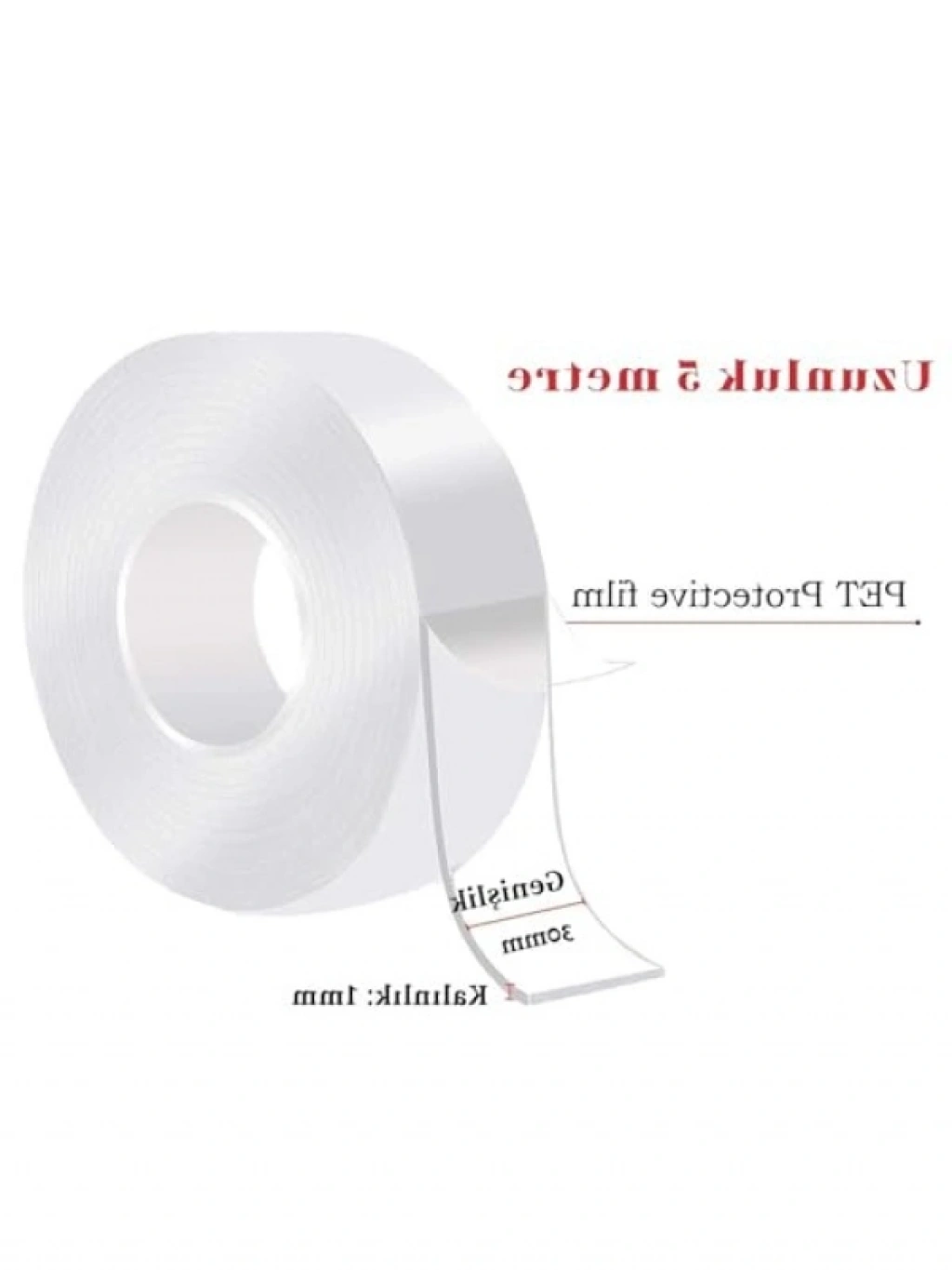 Bu 5 metre uzunluğundaki su sızdırmaz çift taraflı bant, güçlü yapışma özelliği sayesinde çeşitli yüzeylerde kullanılabilir. 30 mm genişliği ve 1 mm kalınlığı ile ince ve kullanışlıdır. Halı, ev, mutfak, banyo veya ofis kullanımlarında ideal bir çözümdür. Yıkanabilir özelliği ile tekrar kullanılabilir olması, ekonomiklik ve pratiklik sunar. Her türlü tamir ve dekorasyon projelerinde güvenilir bir yardımcıdır.