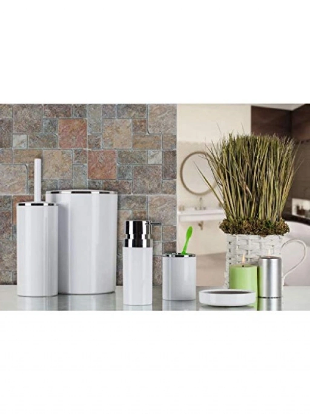 Bu beyaz banyo seti, modern ve şık tasarımıyla banyonuzda estetik bir görünüm sağlar. İçerisinde 5 farklı parça barındıran set, günlük ihtiyaçlarınıza yanıt verirken aynı zamanda banyonuzun dekorasyonuna da katkıda bulunur. Kaliteli malzemelerden üretilmiş bu set, uzun ömürlü kullanımı ile memnuniyetinizi artırır. Banyo setinin her bir parçası, kullanım kolaylığı sağlamak üzere tasarlanmıştır. Hem fonksiyonel hem de dekoratif olan bu set, banyonuzda düzeni sağlarken, zarif bir görünüm sunar.