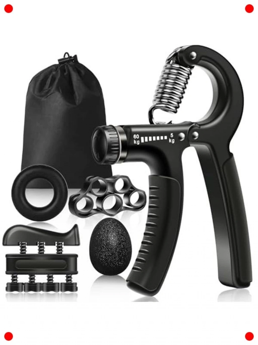 El, bilek ve önkol kaslarınızı kapsamlı bir şekilde geliştirmek için tasarlanmış 5 parçalı fitness seti. Bu set, ayarlanabilir dirençli bir el kavrama güçlendirici (5-60 kg), parmak sedyesi, stres giderici kavrama topu ve parmak güçlendirici içerir. Entegre monitörlü kavrama güçlendirici, ilerlemenizi takip etmenize yardımcı olur. Sporcular, müzisyenler, yaşlılar ve el rehabilitasyonu ihtiyacı olanlar için idealdir. El ve önkol gücünü artırır, esnekliği geliştirir, yaralanma riskini azaltır ve stresi gidermeye yardımcı olur. Kompakt tasarımı sayesinde her yere taşınabilir ve her zaman antrenman yapmanıza olanak tanır.