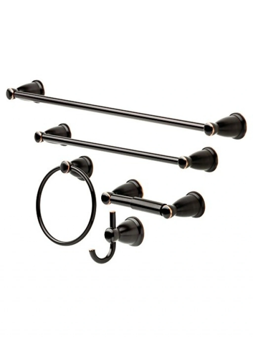 Bu özel 5 parça banyo aksesuar seti, yağlı bronz rengiyle şıklığı bir araya getiriyor. Uyumlu musluk ve duş başlığı ile banyonuzda konforlu bir atmosfer oluşturur. Gündelik banyo ihtiyaçlarınızı karşılamak için tasarlanan bu aksesuarlar, banyonuzu düzenli ve şık hale getirir. Uzun ömürlü kaplama sayesinde, korozyon ve renk solması gibi sorunlarla karşılaşmazsınız. Kurulum talimatları ve donanımı ile birlikte gelir, montajı son derece kolaydır.