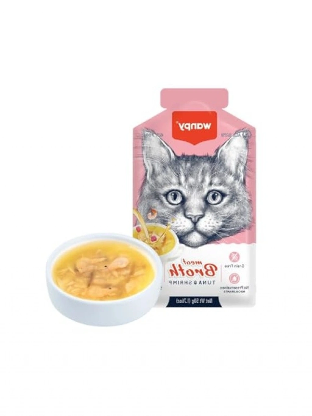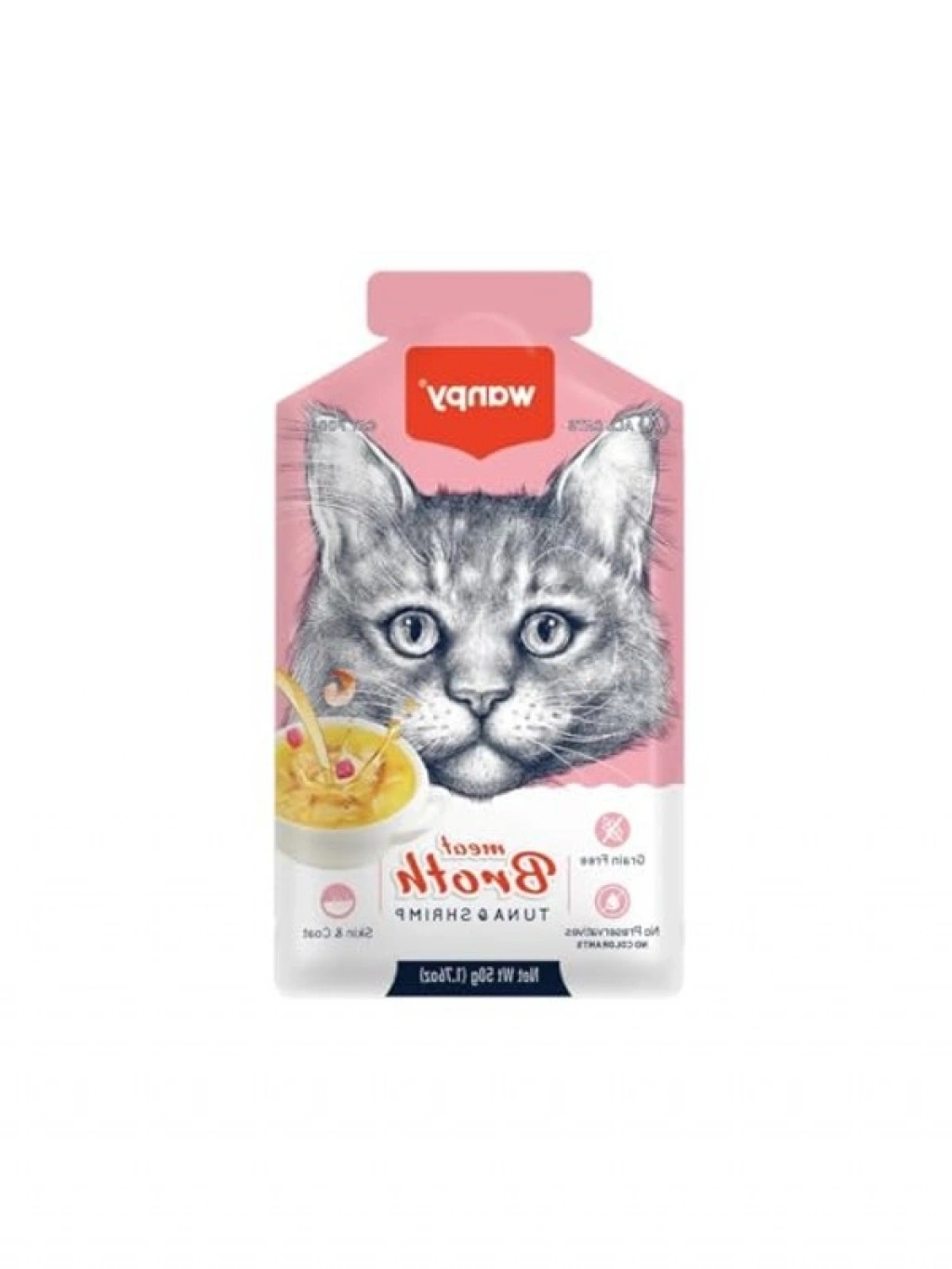 50 gramlık tekli karidesli ton balığı eti çorbası, tamamen tahılsız bir içeriğe sahiptir. Renklendirici ve koruyucu madde kullanılmadan hazırlanmış olan bu çorba, kedinizin damak zevkine hitap eden lezzetli bir seçenektir.