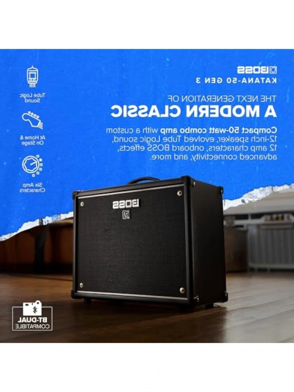50 Watt gücünde olan bu amplifikatör, 1 x 12 inç hoparlör ile zengin bir ses deneyimi sunar. 5 eşzamanlı efekt seçeneği ile müzikte yaratıcılığınızı konuşturabilirsiniz. Kulaklık çıkışı sayesinde sessiz çalışma imkanı sağlar. Farklı güç ayarları (50/25/0,5 W) ile her mekan için idealdir.