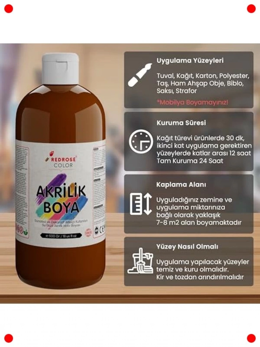 Sanatsal projeleriniz için mükemmel yoğunluk ve canlılık sunan 500 gram kahverengi akrilik boya. Yüksek pigmentasyon sayesinde zengin ve kalıcı bir renk deneyimi sağlar. Kanvas, ahşap, metal, seramik ve kumaş gibi birçok yüzeyde rahatlıkla kullanılabilir. Hızlı kuruma özelliği sayesinde katmanlı çalışmalara olanak tanır ve projelerinizi daha kısa sürede tamamlamanıza yardımcı olur. Su bazlı formülü sayesinde kolayca temizlenir ve toksik değildir, bu da hem profesyonel sanatçılar hem de hobi amaçlı kullanıcılar için güvenli bir kullanım sunar. Sanat eserlerinize derinlik ve sıcaklık katmak için ideal bir seçimdir.