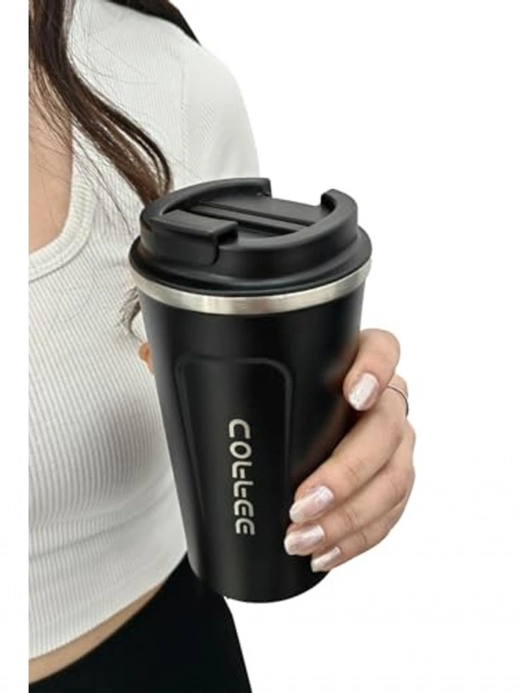 500 ml kapasiteli siyah çelik vakumlu termos, içeceklerinizi uzun süre sıcak ya da soğuk tutabilen çift cidarlı ısı yalıtımı ile tasarlanmıştır. Sızdırmaz kapak yapısı ile güvenli taşıma sağlar ve kaymaz tutma bandı konforlu bir kullanım sunar.