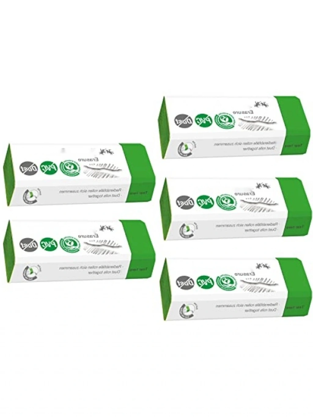 Bu beşli tozsuz silgi seti, temiz ve yumuşak bir silme deneyimi sunar. Silgi artıkları yuvarlandığı için az atık oluşturur, böylece temiz bir çalışma ortamı sağlar. PVC içermeyen yapısı, sağlıklı ve güvenilir bir kullanım sağlar. Kaliteli silgiler, yeşil rengiyle dikkat çeker ve her türlü yazım malzemesi için uygundur.