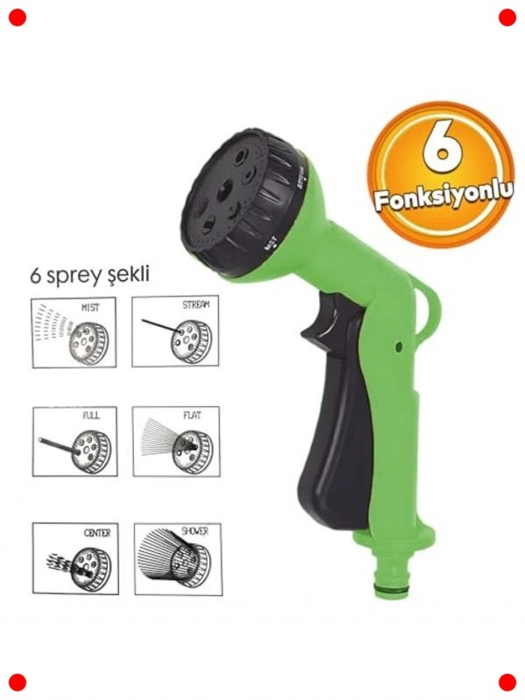 Bu çok yönlü tabanca ile araba yıkama, bahçe sulama ve genel temizlik işlerinizi kolaylaştırın. Otomatik tetik mekanizması ve 6 farklı püskürtme modu sayesinde her türlü ihtiyaca uygun ayar yapabilirsiniz. Yüksek kaliteli malzemeden üretilen bu tabanca, dayanıklı yapısıyla uzun süreli kullanım sunar. Ergonomik tasarımı sayesinde yorulmadan uzun süre kullanabilir, tetiği rahatça kavrayabilirsiniz. İster hassas çiçeklerinizi sulayın, ister inatçı kirleri temizleyin, bu ayarlı tabanca her görevde üstün performans sağlar. Basit bağlantı sistemiyle hemen kullanıma hazır hale gelir, bahçe hortumunuzla uyumlu çalışır. Ev ve bahçe bakımı için ideal, pratik ve etkili bir çözümdür.