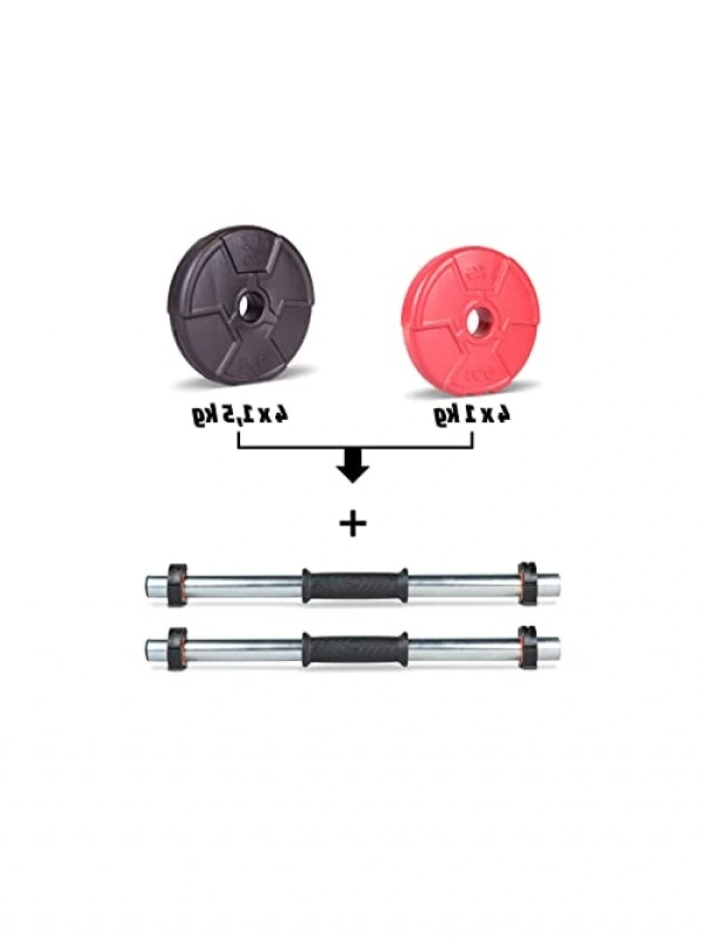 Bu 6 in 1 dambıl seti, 4 adet 1.5 kg siyah plaka ve 4 adet 1 kg kırmızı plaka ile birlikte gelir. İki adet 40 cm krom kaplama kısa bar ve 4 adet özel üretim plastik sıkıştırma aparatı içerir. Set, çift bar ile farklı ağırlık kombinasyonları oluşturmanıza olanak tanır. Yerli üretim olan bu set, 1 yıllık garantisi ile güvenilir bir spor ekipmanıdır. Farklı kombinasyonlarla antrenmanlarınızı çeşitlendirin ve kas gelişiminizi destekleyin.