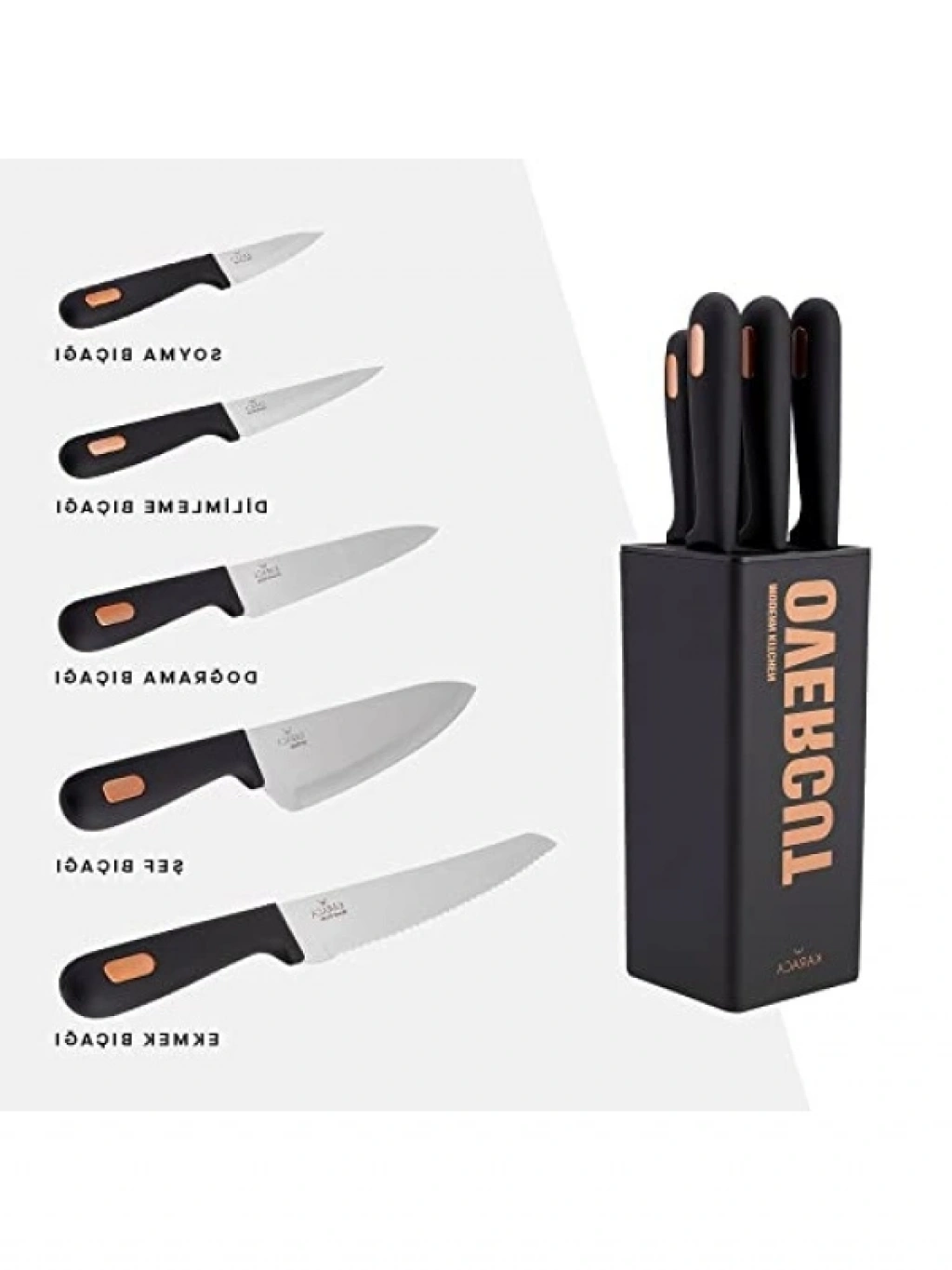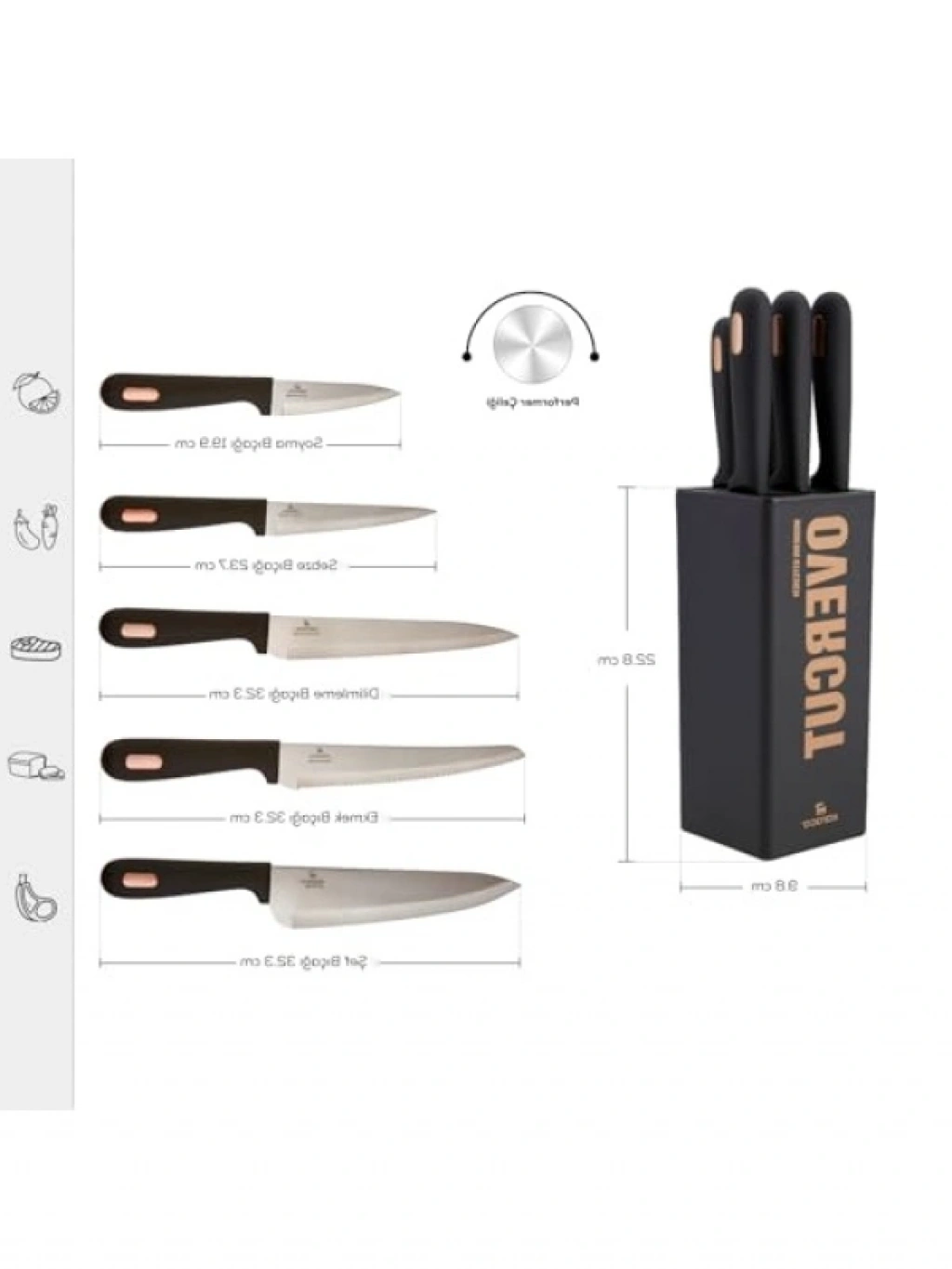 Bu 6 parçalı bıçak seti, mutfaktaki tüm kesim ihtiyaçlarınızı karşılamak için tasarlanmıştır. Yüksek kaliteli malzemelerle üretilmiş olan bıçaklar, dayanıklılığı ve keskinliği ile dikkat çekmektedir. Şık ve kullanışlı tasarımı sayesinde mutfağınızın vazgeçilmezi olacak. Her bıçak, farklı kesim işlemleri için özel olarak tasarlanmıştır ve yemek hazırlama sürecinizi kolaylaştırır.