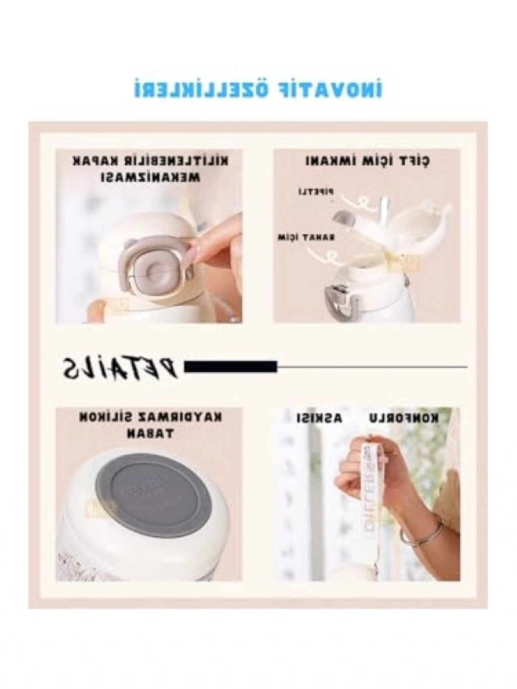 Kaliteli paslanmaz çelikten üretilmiş bu termos, sevimli hayvan desenleriyle dikkat çekiyor. 600ml kapasiteye sahip olan bu termos, içeceklerinizi 6 saat sıcak, 6 saat ise soğuk tutma performansına sahiptir. El askılı tasarımı sayesinde rahat taşınabilir, hem günlük kullanım hem de seyahatlerde yanınızda bulundurmak için idealdir.