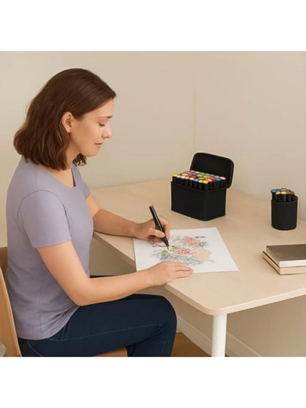 Bu profesyonel marker boyama seti, 60 canlı renkten oluşur ve çift taraflı tasarımı ile hem ince hem de kalın uç seçenekleri sunar. Boyama, tonlama ve gölgelendirme işlemlerinde mükemmel sonuçlar elde etmenizi sağlar. Kalıcı, hızlı kuruyan mürekkep ile yüksek kaliteli çizimler yapabilirsiniz. Dayanıklı kumaş çantası ile kalemleri düzenli bir şekilde saklar ve taşımanızı kolaylaştırır. Toksik olmayan ve kokusuz yapısıyla çocuklar ve yetişkinler için güvenlidir.