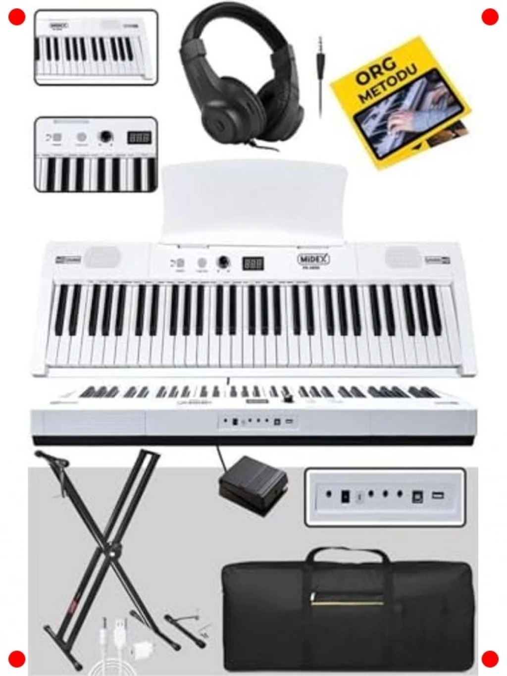 Müzik yolculuğunuza başlamak veya mevcut becerilerinizi geliştirmek için mükemmel bir başlangıç seti. Tuş hassasiyetine sahip 61 tuşlu dijital org, dinamik ve etkileyici çalma deneyimi sunar. Bluetooth ve USB MIDI bağlantı özellikleriyle modern eğitim uygulamaları ve yazılımlarıyla kolayca entegre olabilir, yaratıcılığınızı serbest bırakabilirsiniz. Set içerisinde yer alan sustain pedalı, daha zengin ve dolgun sesler elde etmenizi sağlarken, taşıma çantası, kulaklık ve nota standı gibi aksesuarlar enstrümanınızı her yere götürmenizi ve pratik yapmanızı kolaylaştırır. Kapsamlı öğrenim metodu ile müzik teorisini ve pratik teknikleri hızla kavrayın. Evde, okulda veya sahne performanslarında kullanıma uygun, çok yönlü ve eksiksiz bir pakettir.