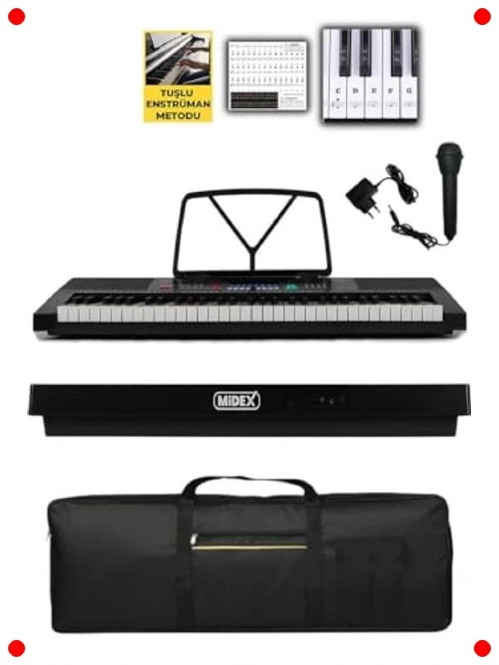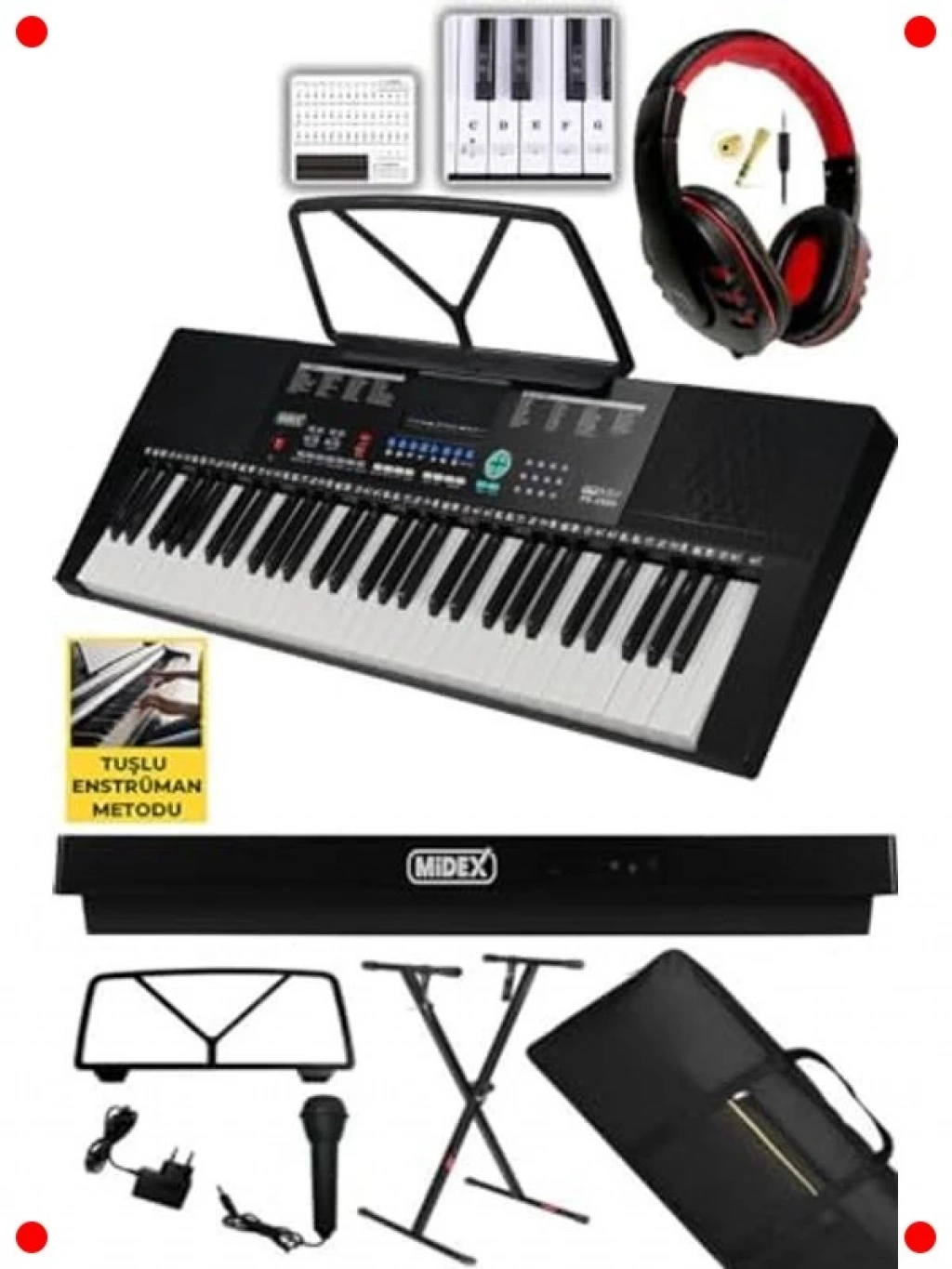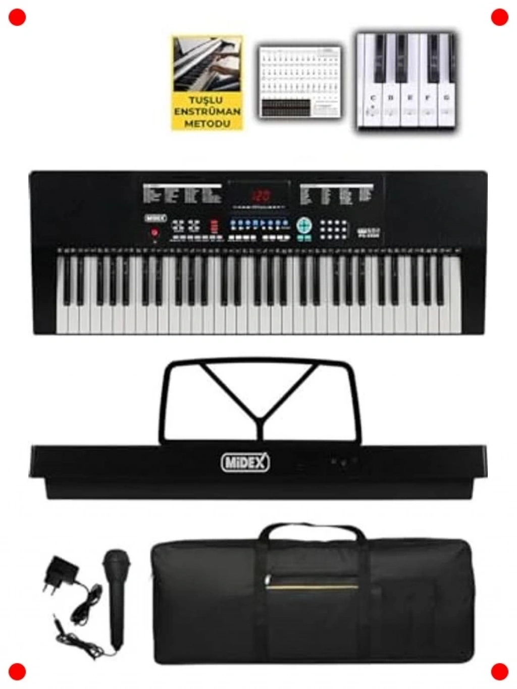 Müziğe yeni başlayanlar veya eğlenceli pratik seansları arayanlar için mükemmel bir başlangıç seti. LED ekranlı 61 tuşlu org klavyesi, kullanıcı dostu arayüzü sayesinde farklı sesleri ve ritimleri kolayca keşfetmenizi sağlar. Çeşitli enstrüman sesleri ve eşlik ritimleriyle müzikal yaratıcılığınızı serbest bırakın. Bu set, pratik deneyiminizi zenginleştirecek ve size kolaylık sağlayacak temel aksesuarları içerir: ergonomik bir klavye standı, güvenli taşıma için bir çanta, özel pratikleriniz için kulaklık, notalarınızı rahatça yerleştirebileceğiniz bir notalık ve güç adaptörü. Her şey dahil bu paketle, müziğe hemen adım atabilirsiniz.