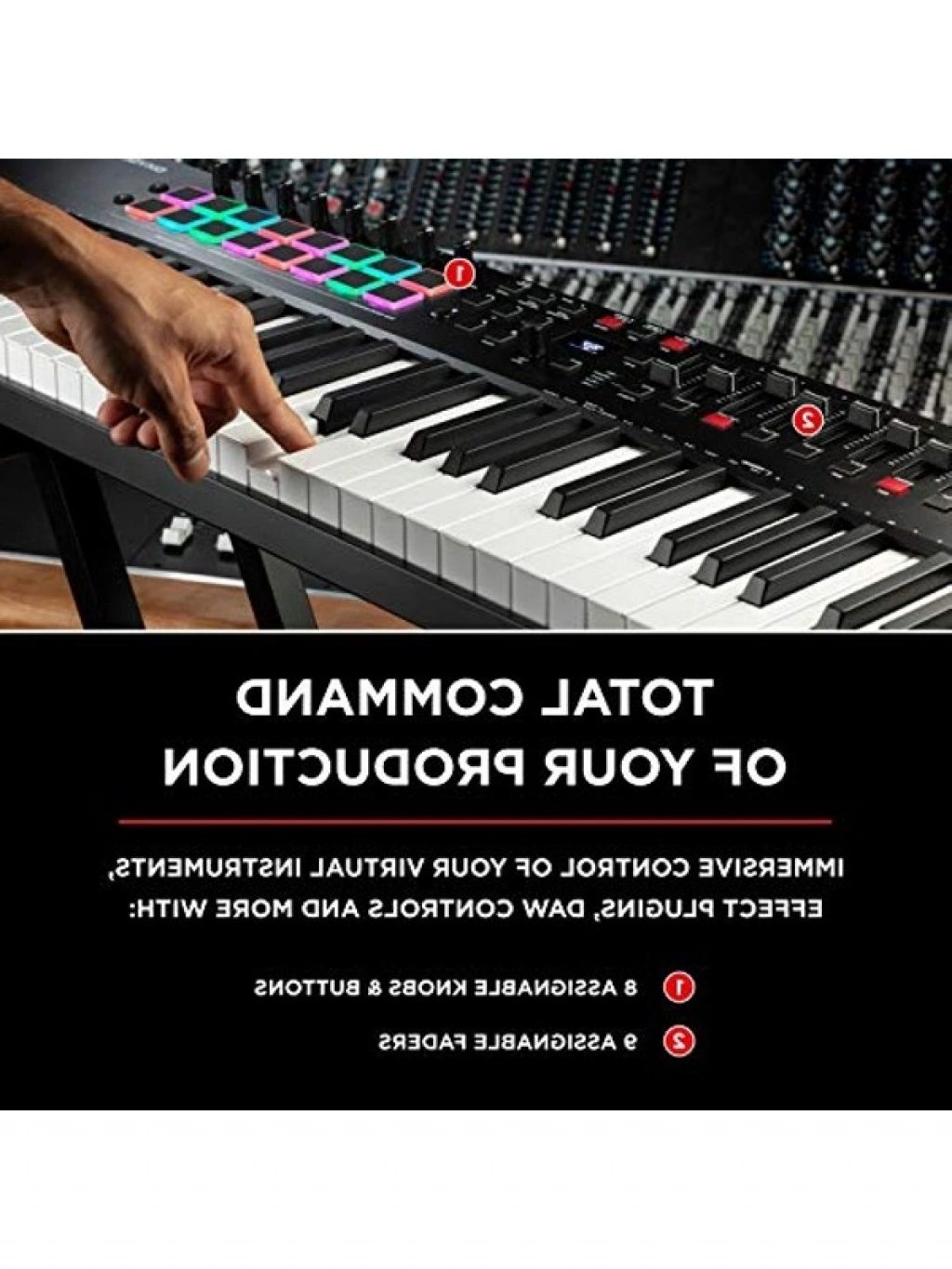 61 tuşlu USB MIDI klavye controller, aftertouch ve atanabilir bölgelere sahip yarı ağırlıklı tuşları ile sanal enstrümanlarınızı çalmak için idealdir. 16 RGB arkadan aydınlatmalı davul pedi ve 8 atanabilir düğme ile müzik prodüksiyonunuzu zenginleştirir.