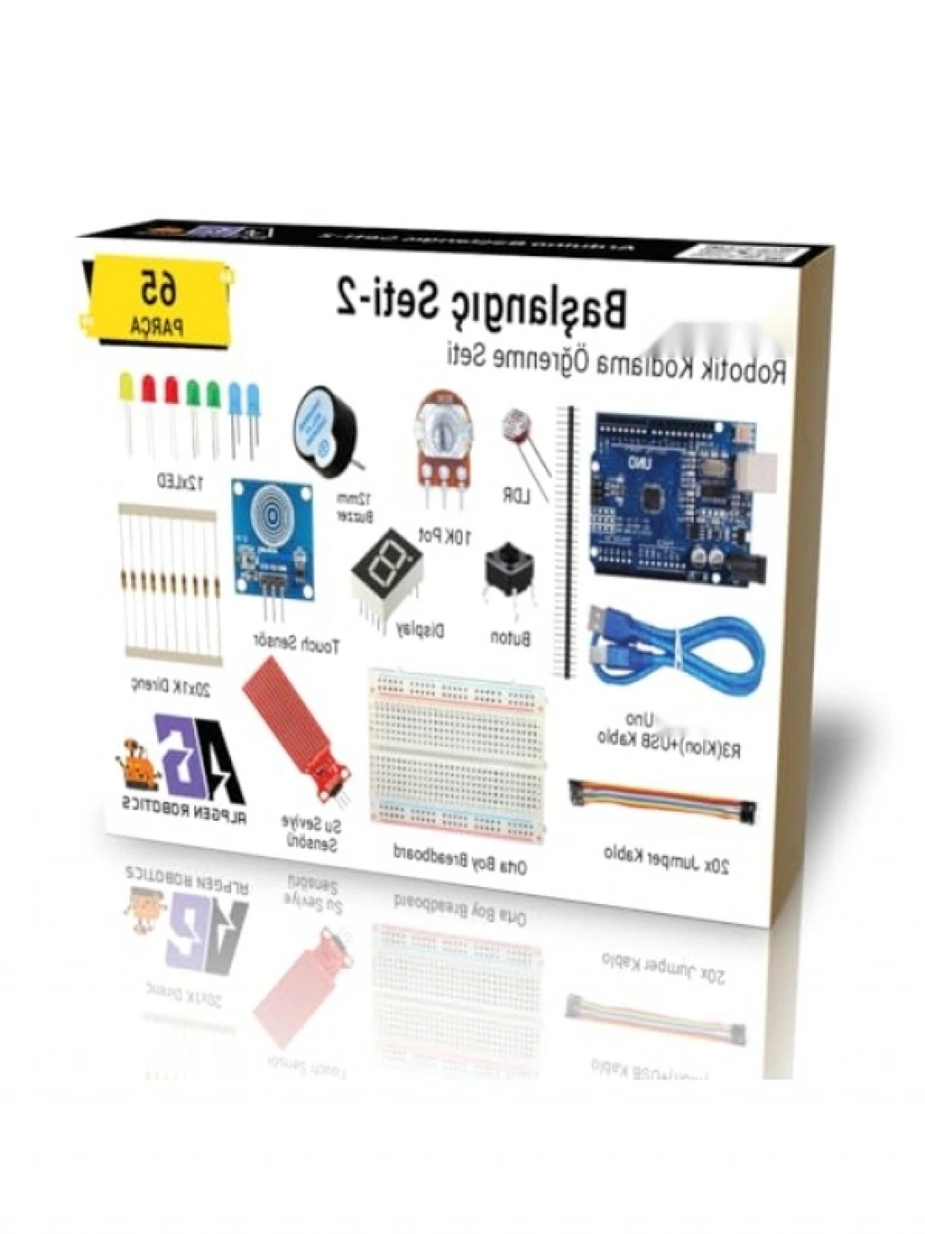 Bu 65 parçadan oluşan robotik kodlama seti, Arduino Uno R3 ile birlikte gelir ve robotik projelerinizi geliştirmeniz için gerekli tüm bileşenleri içerir. Renkli LED'ler, potansiyometreler, butonlar ve sesli uyarı için buzzer gibi çeşitli parçalar, yaratıcılığınızı ortaya çıkarmak için idealdir. Projelerinizi gerçekleştirmek için gereken tüm materyalleri bir araya getirerek, kodlama ve elektronik öğrenimini eğlenceli hale getirir.