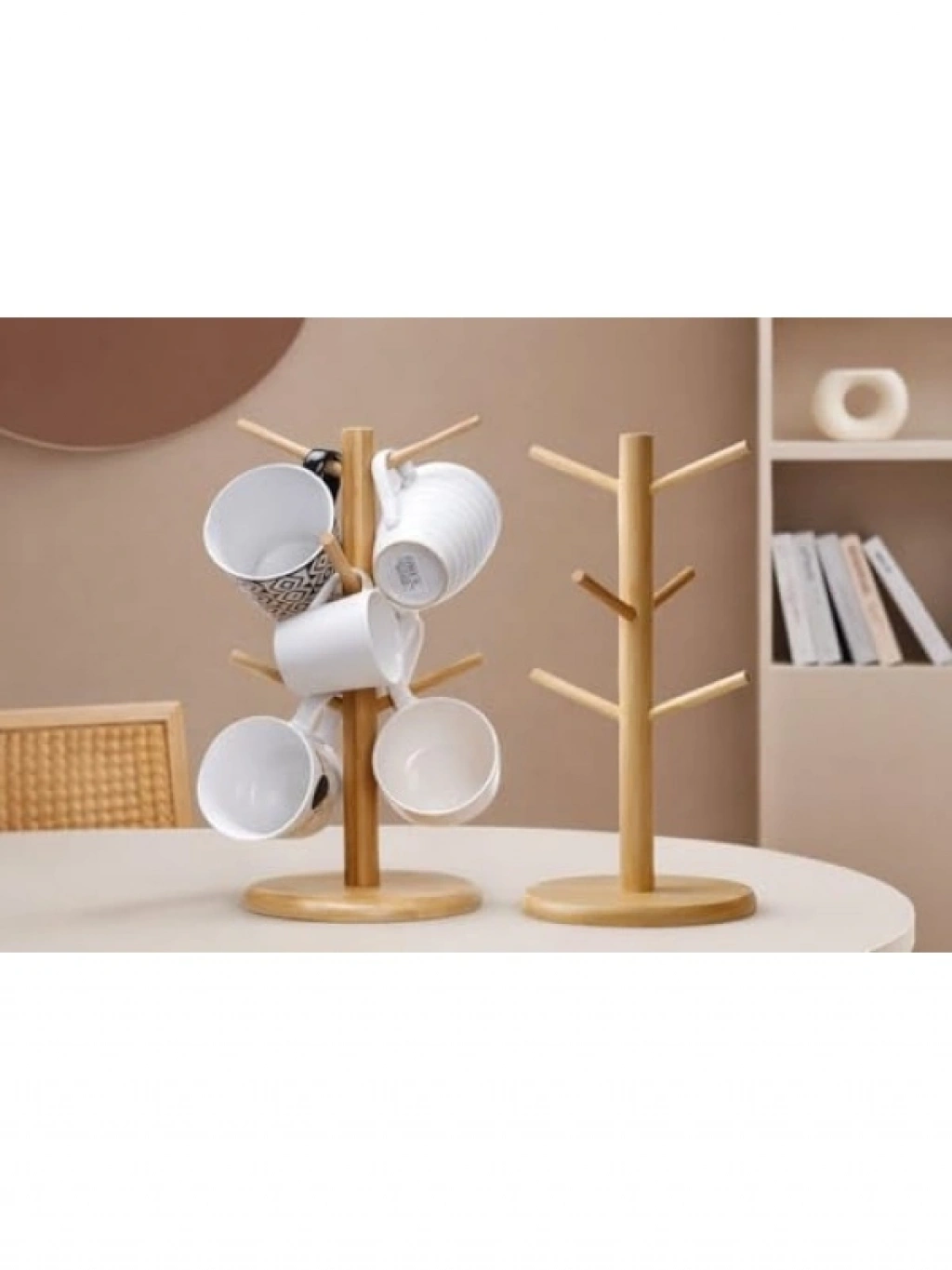 Bu bambu kupa askılığı, 6 adet seramik kupayı düzenli bir şekilde sergilemenizi sağlar. Dayanıklı bambu ahşap yapısı ile masaüstünde güvenli bir kullanım sunar. Günlük sıcak ve soğuk içeceklerinizi servis etmek için ideal olan bu set, mutfak tezgahı veya ofis kullanımı için uygundur. Şık tasarımıyla yeni ev hediyesi veya çeyiz seti olarak da tercih edilebilir.
