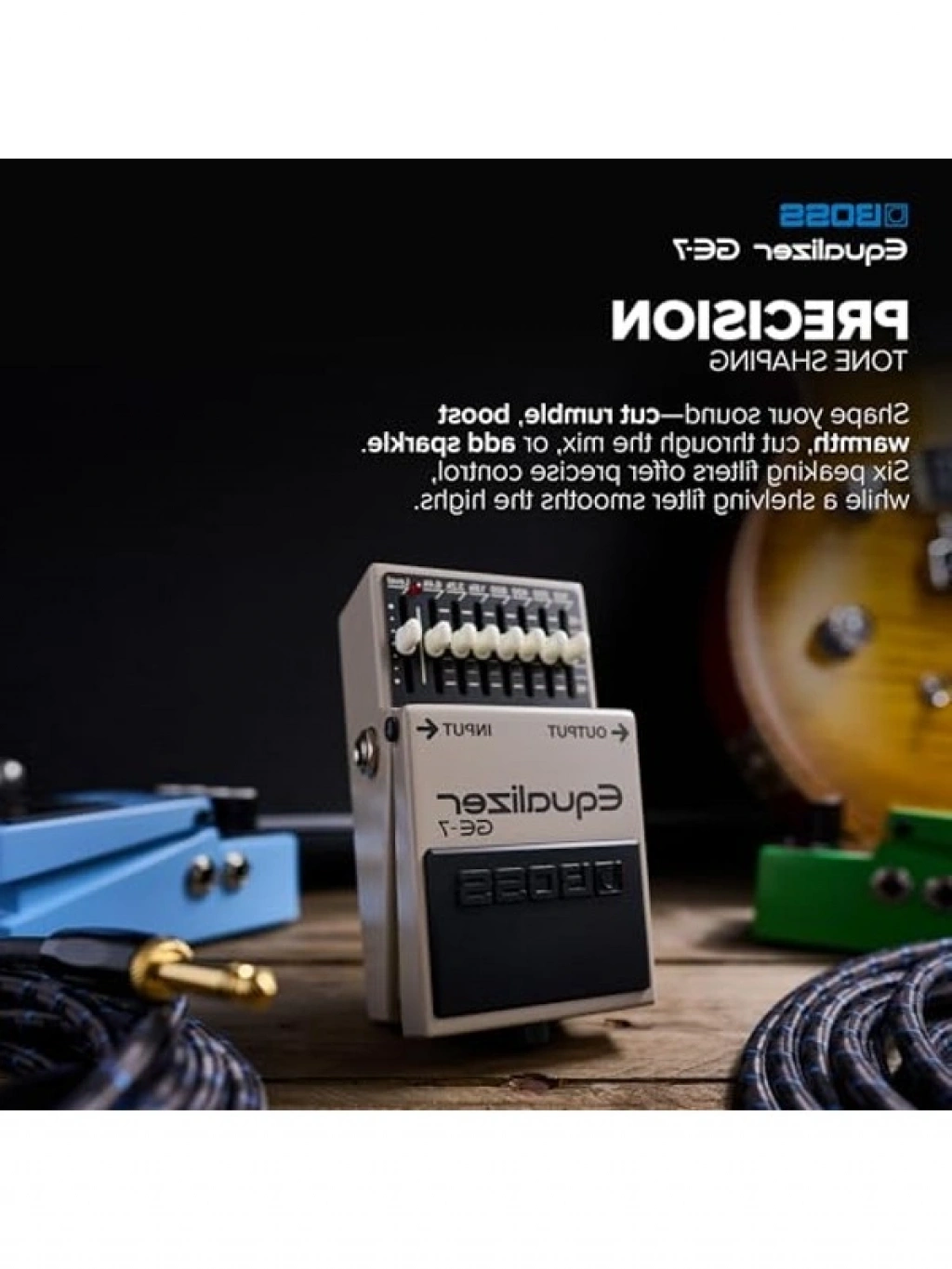 7 bantlı EQ pedalı, sesinizi istediğiniz gibi şekillendirmek için idealdir. Ekolayzır kontrol sürgüleri ile 100, 200, 400, 800, 16k, 32k, 64kHz frekanslarında ayarlamalar yapmanıza olanak tanır. 10 mA elektrik tüketimi ile düşük enerji harcarken, 9V pil ile çalışmaktadır. Ses düzenlemelerinizi profesyonel bir şekilde gerçekleştirin.