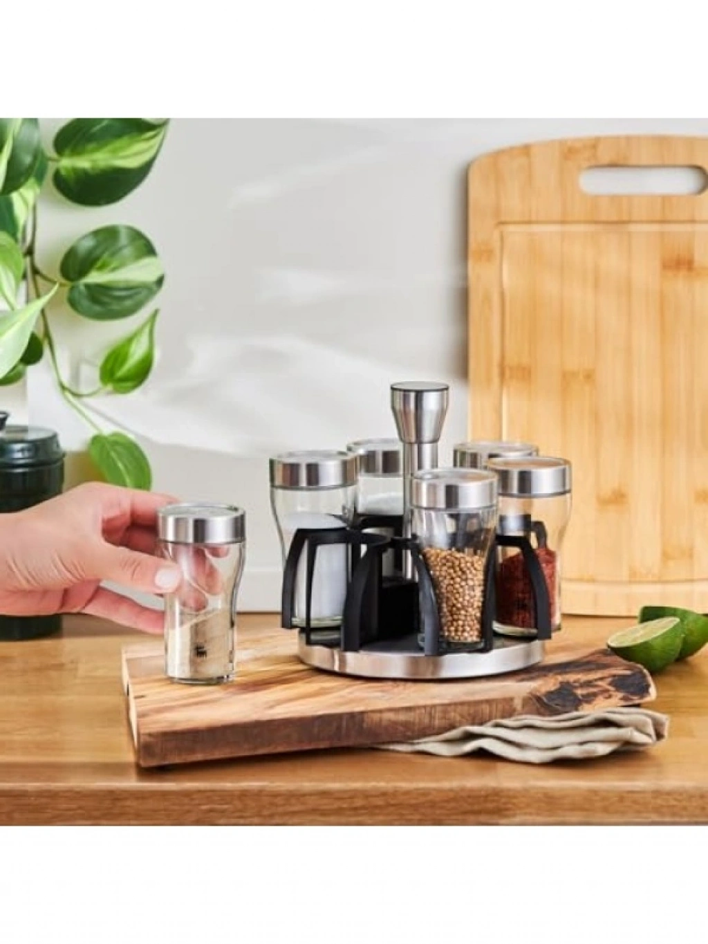 Bu 7 parçadan oluşan baharat takımı, mutfaklarınızda düzeni sağlarken, baharatlarınızı güvenli bir şekilde saklar. Pratik ve kullanımı kolay tasarımı ile her türlü baharatı yerleştirebileceğiniz bu set, yemeklerinize lezzet katmak için ihtiyacınız olan tüm malzemeleri elinizin altında tutar. Mutfak dekorunuza şıklık katacak bu baharat takımı, her evde bulunması gereken bir üründür.