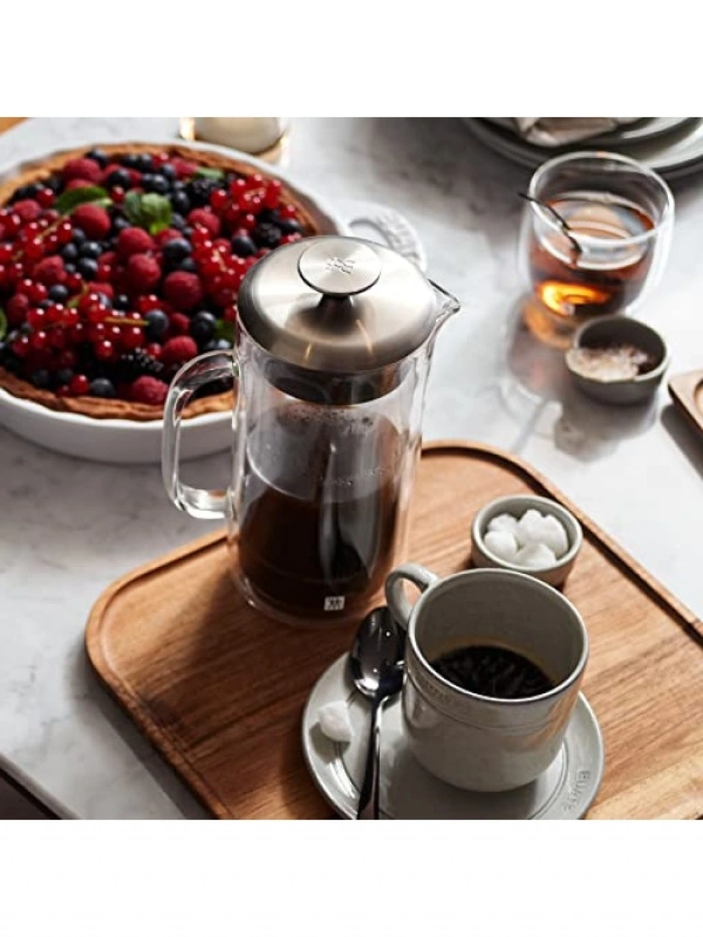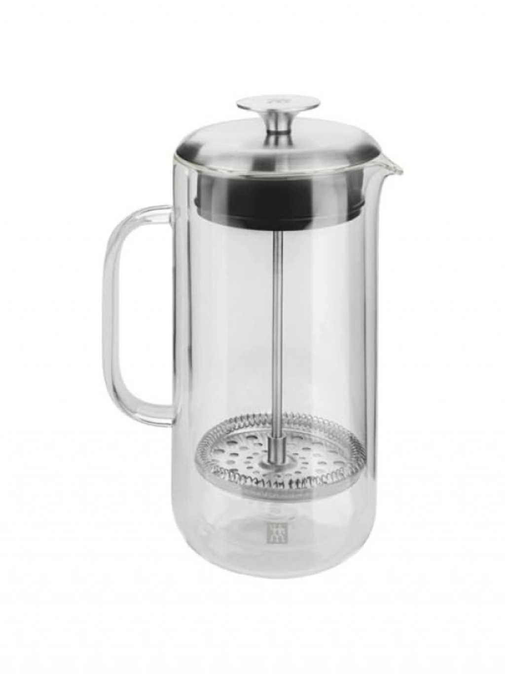 Yüksek kaliteli borosilikat camdan üretilmiş bu çift camlı French press, 750 ml iç kapasitesi ile kahve severler için mükemmel bir seçimdir. Özel tasarımı sayesinde kahvenizi sıcak tutarken, 18/10 paslanmaz çelik kapak ve topuz ile şıklığı bir arada sunar. Hızlı ve kolay kullanım imkanıyla, sıcak veya soğuk pres kahve hazırlamak için idealdir. Zanaatkarlar tarafından el yapımı olarak üretilmiştir, bu da her bir parçanın benzersiz olmasını sağlar.