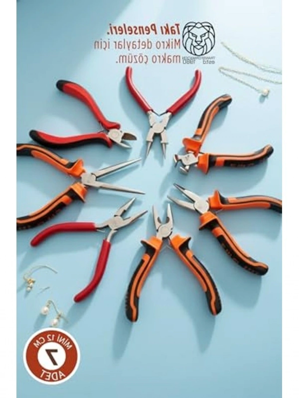 7'li profesyonel takı pense seti, çeşitli kesim ve şekillendirme işlemleri için gerekli olan aletleri içerir. Eğri uçlu, mini tepe keski, düz kargaburun, sivri uçlu kargaburun, yan keski ve yan keskili sivri kargaburun gibi farklı türlerde pense seçenekleriyle her türlü ihtiyaca yanıt verir.