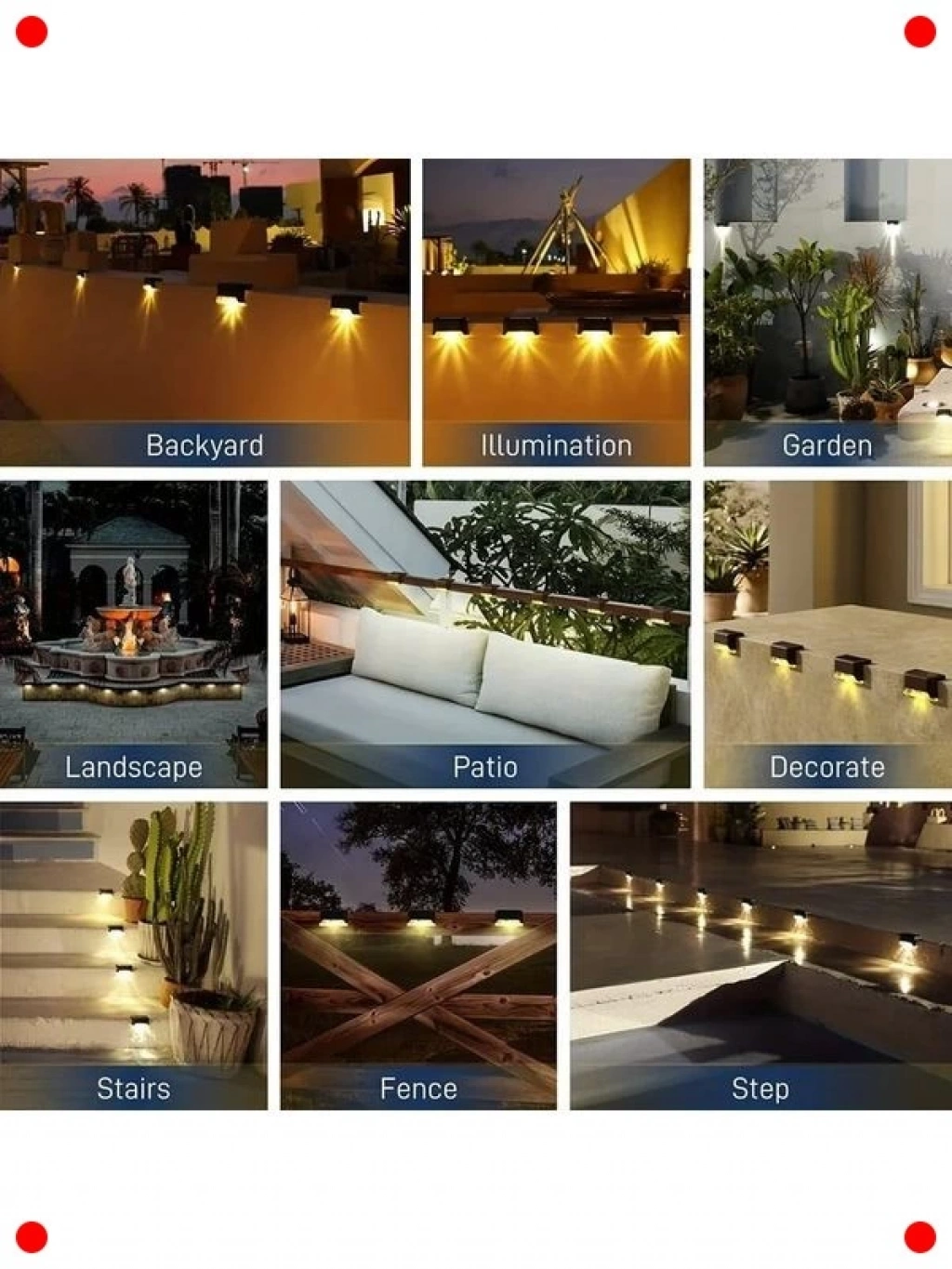 Merdivenlerinizi, verandalarınızı, bahçe yollarınızı ve çitlerinizi hem aydınlatmak hem de estetik bir görünüm kazandırmak için ideal olan bu 8 adet güneş enerjili basamak ışığı, pratik ve enerji verimli bir çözümdür. Gün ışığı rengindeki LED'leri sayesinde ortamınıza doğal bir parlaklık katarken, güvenlik seviyesini artırır. Güneş enerjisiyle çalıştığı için ek elektrik kablolaması gerektirmez ve otomatik olarak şarj olur, hava karardığında kendiliğinden yanar. IP65 su geçirmezlik özelliği ile her türlü hava koşuluna dayanıklıdır. Şık siyah tasarımı her dış mekan dekorasyonuna uyum sağlar. Kolay montajı sayesinde kısa sürede kullanıma hazır hale gelir.