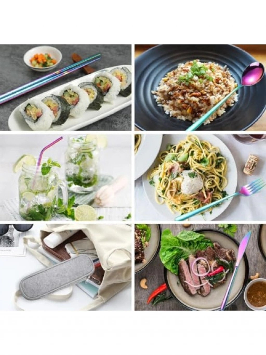 Bu 8 parça çantalı çatal bıçak kaşık seti, kamp, okul, ofis ve tatil için idealdir. Paslanmaz çelik malzemeden üretilmiş olup, dayanıklı ve uzun ömürlüdür. Renkli tasarımıyla dikkat çekerken, pratik taşıma çantası ile birlikte gelir. Bu set, dış mekan aktivitelerinizde ihtiyaç duyacağınız tüm yemek gereçlerini bir arada sunar, yeterli hijyen ve konfor sağlar.