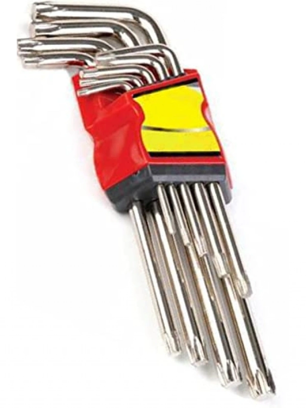 Bu alyan anahtar takımı, yıldız uçlu anahtarların kolayca oturmasını sağlayan yuvarlatılmış uçlara sahiptir. Korozyona karşı dayanıklı parlak nikel kaplama ile uzun ömürlü bir kullanım sunar. Sertleştirilmiş kaliteli Krom-Vanadium malzeme ile üretilmiştir ve yerleştirme aparatı sayesinde setinizi düzenli tutabilirsiniz.